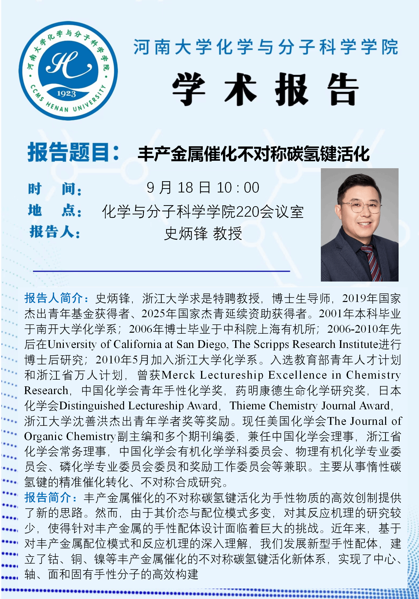 史炳锋:丰产金属催化不对称碳氢键活化(时间:9月18日)