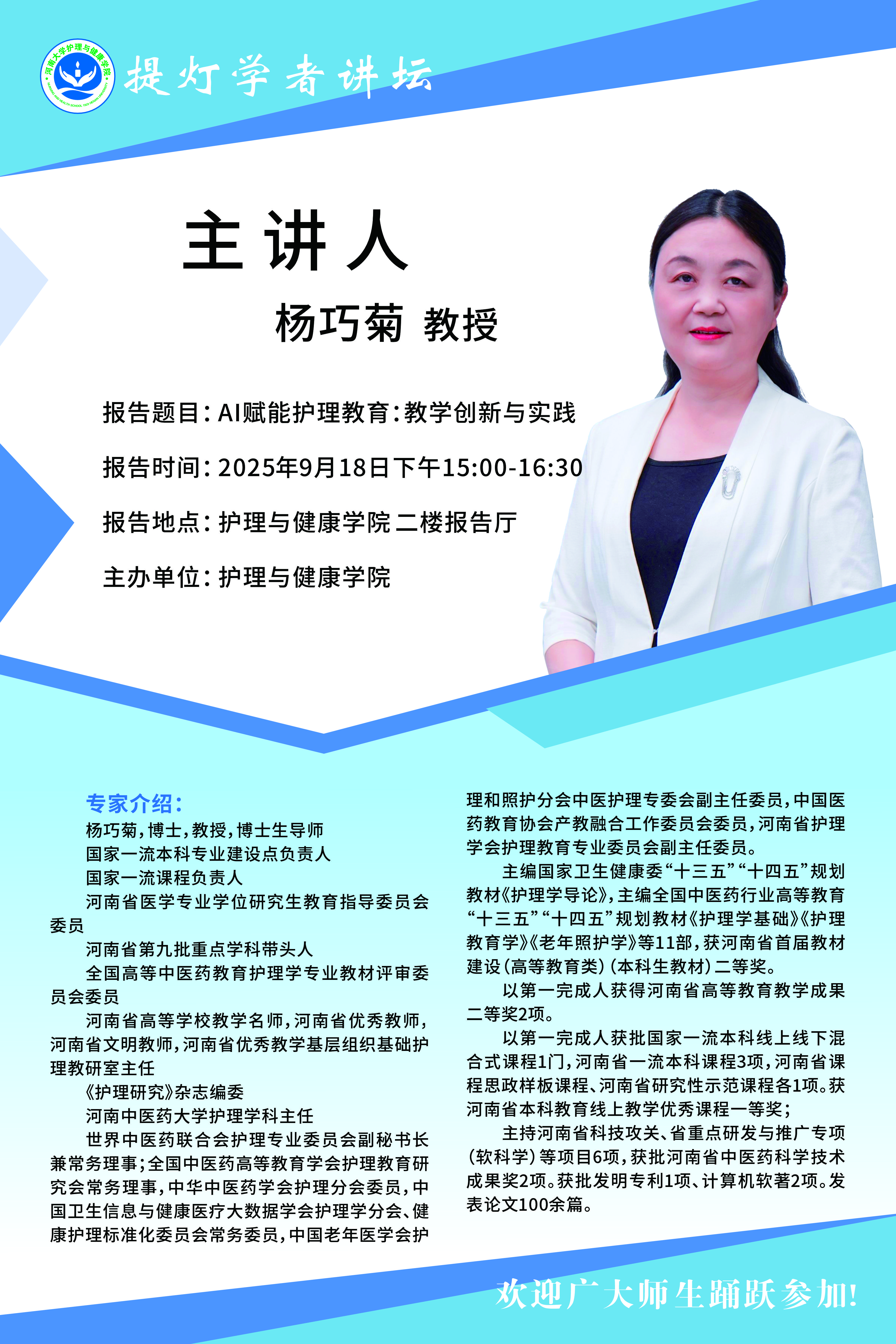 杨巧菊:AI赋能护理教育:教学创新与实践(时间:9月18日)