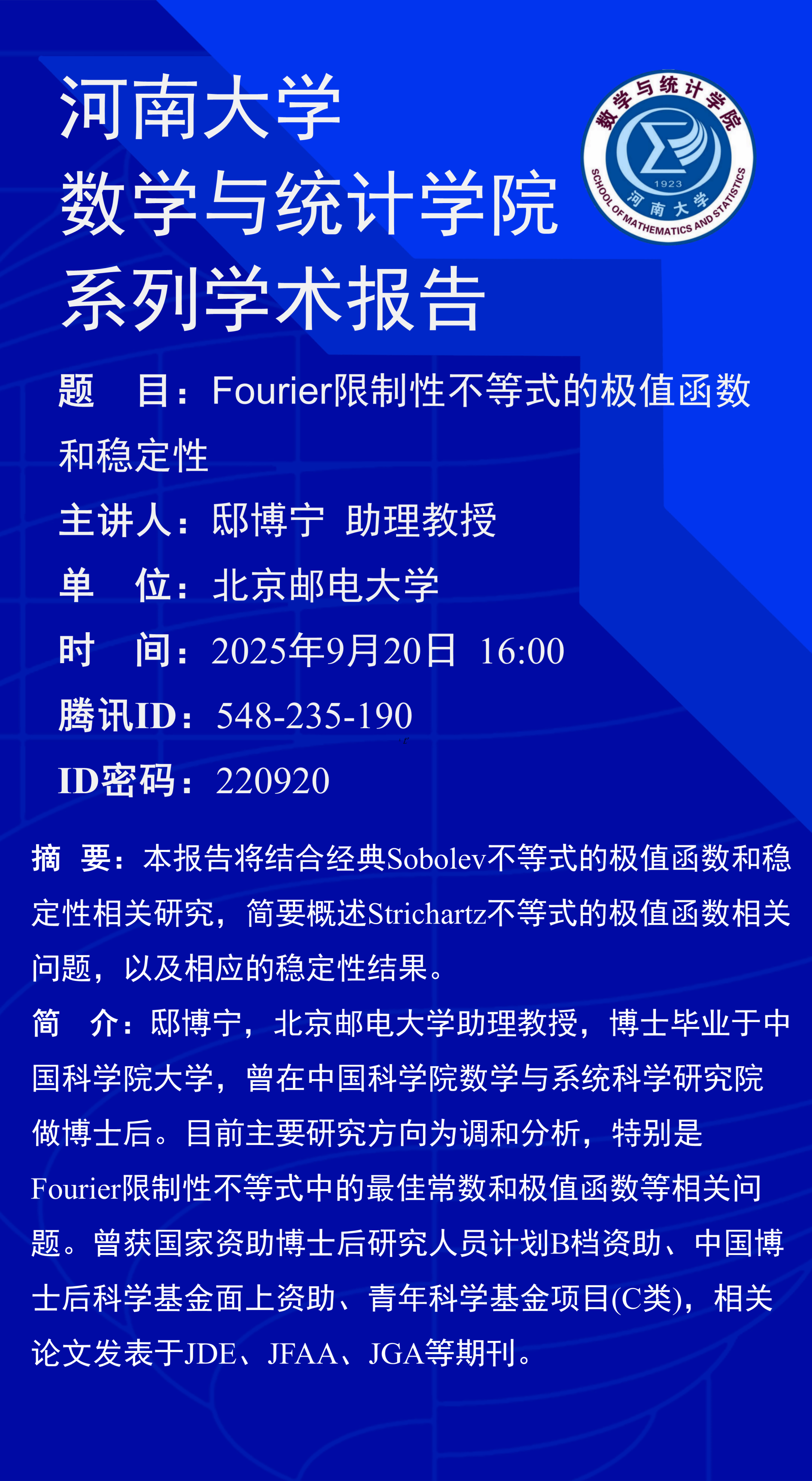 邸博宁 :Fourier限制性不等式的极值函数和稳定性(时间:2025年9月20日)
