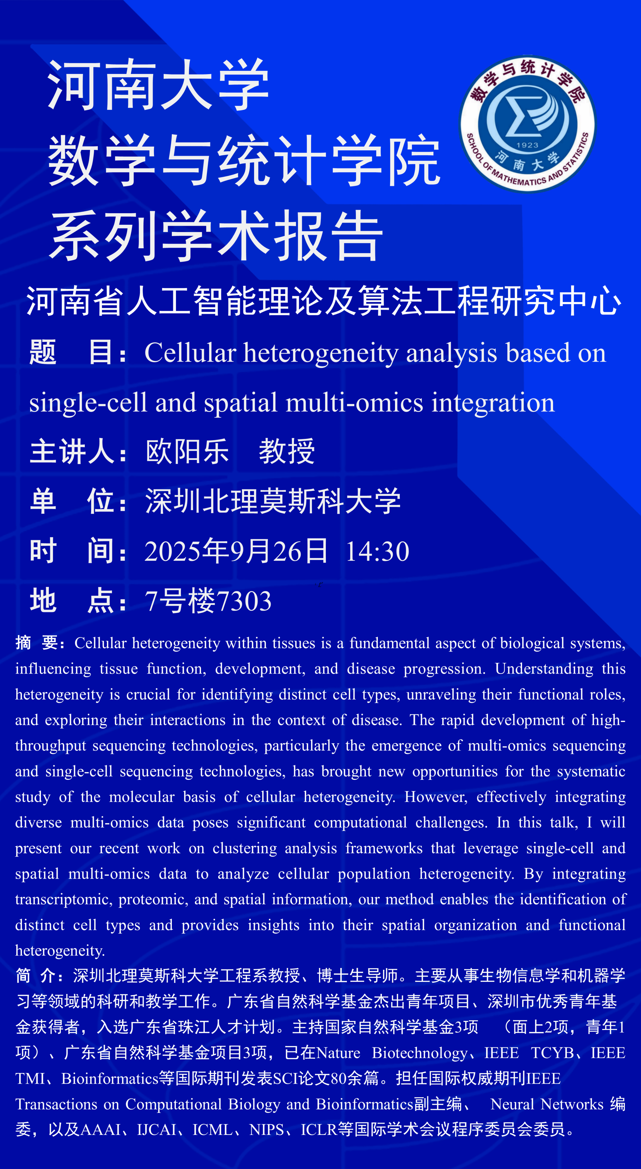 欧阳乐:Cellular heterogeneity analysis based on single-cell and spatial multi-omics integration (时间:9月26日)