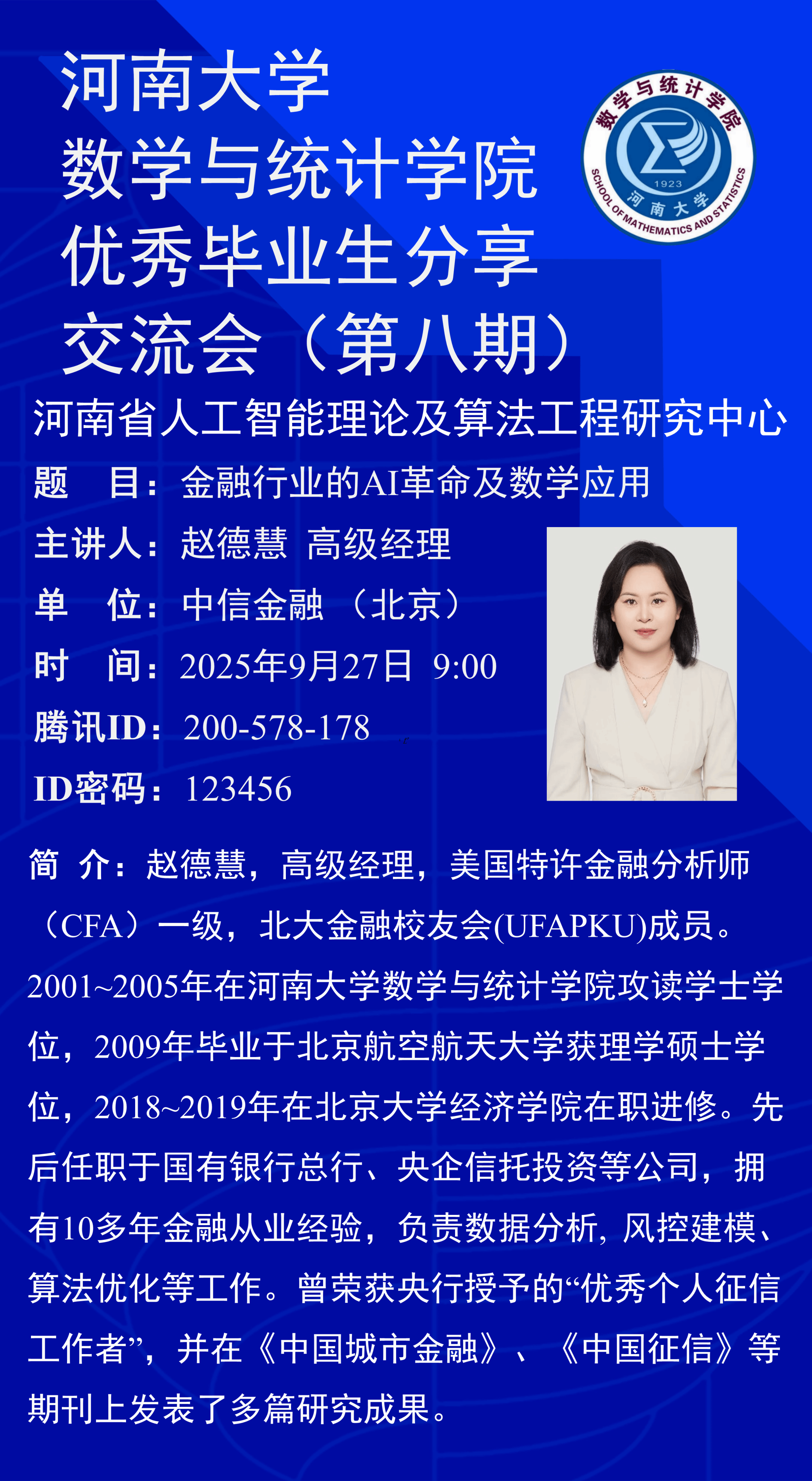 赵德慧 :金融行业的AI革命及数学应用(时间:9月27日)