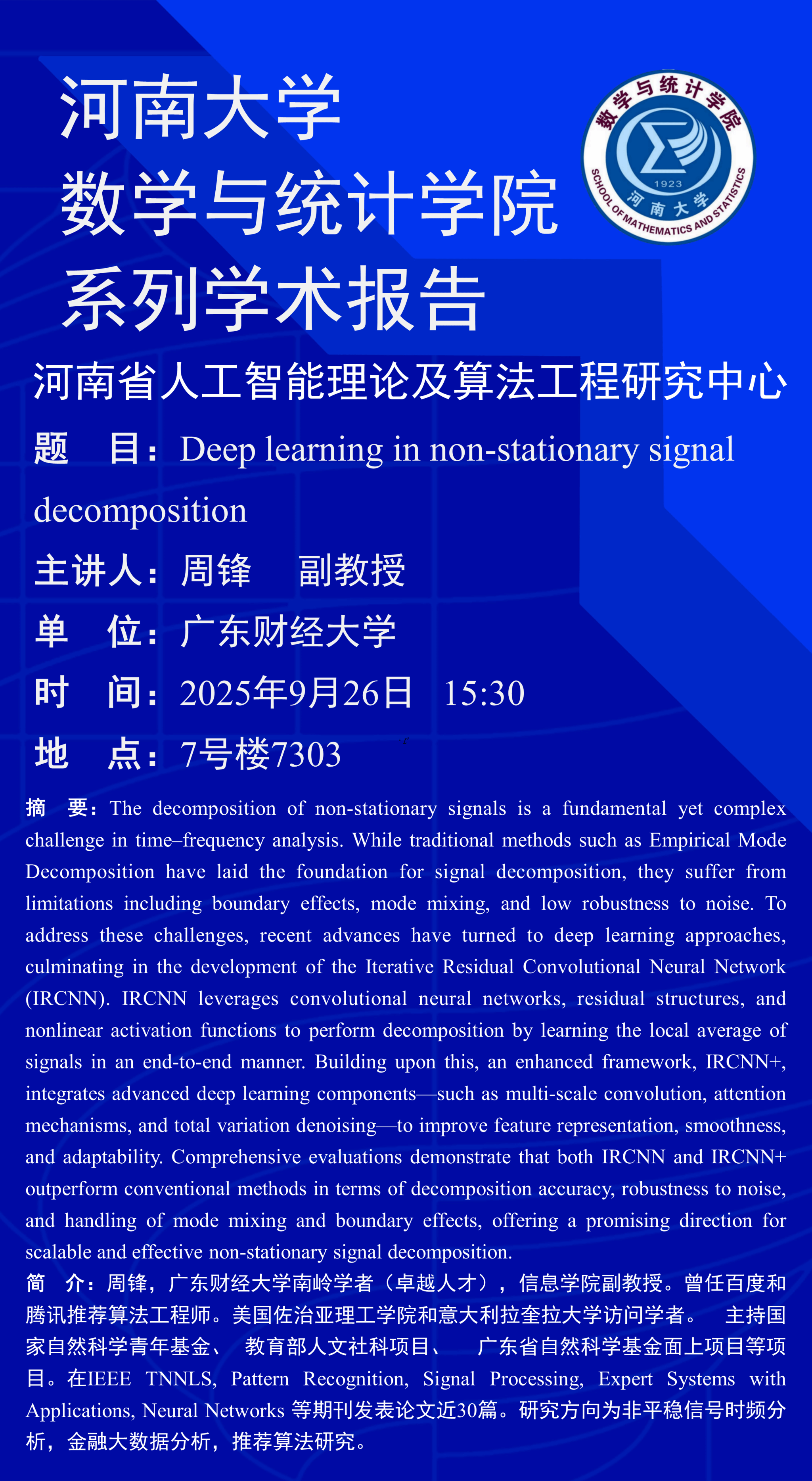周锋:Deep learning in non-stationary signal decomposition(时间:9月26日)