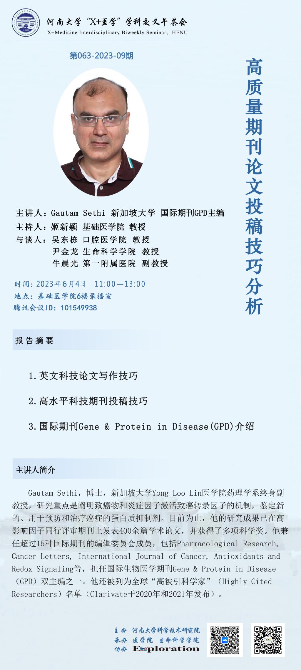 “X+医学”学科交叉午茶会:Gautam Sethi:高质量期刊论文投稿技巧分析(时间6.4)