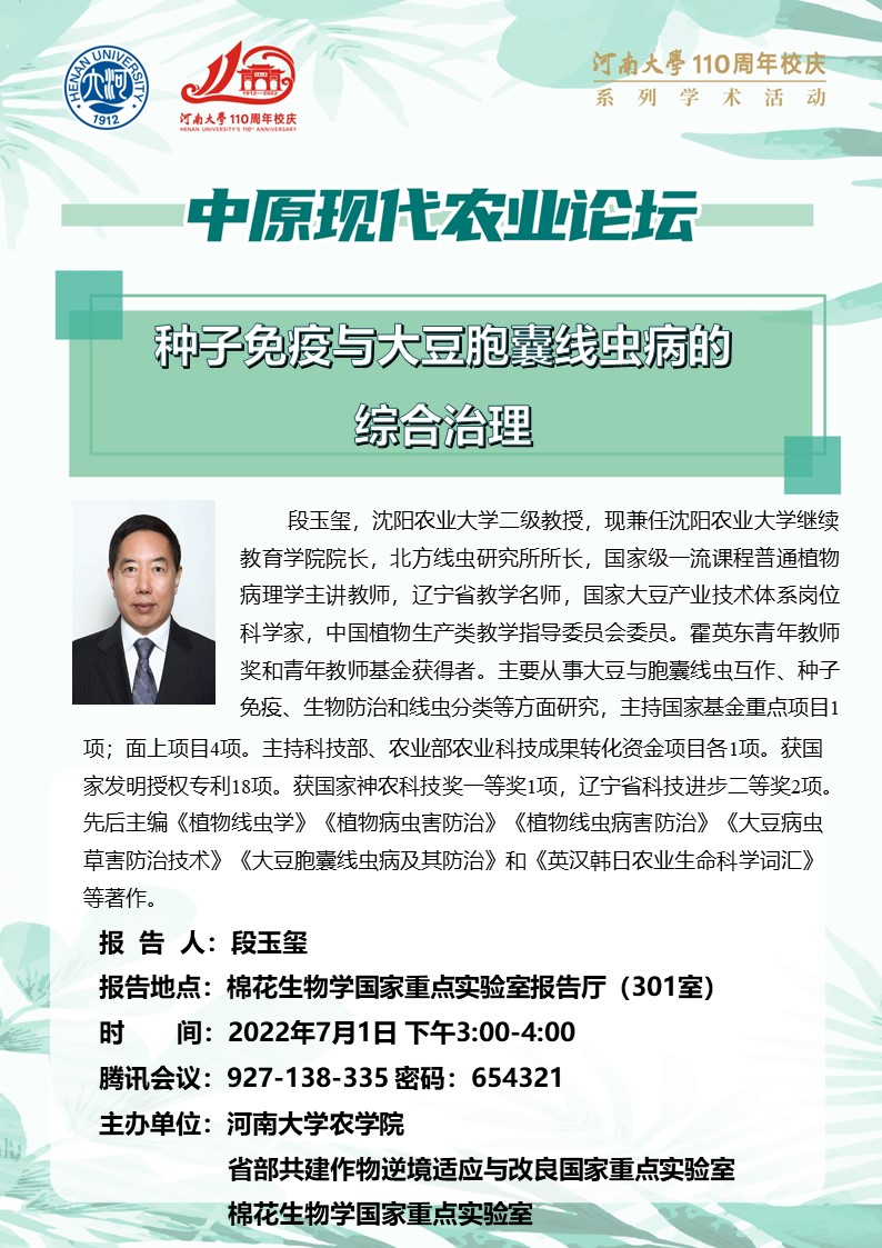段玉玺:种子免疫与大豆包囊线虫病的综合治理(7.1)