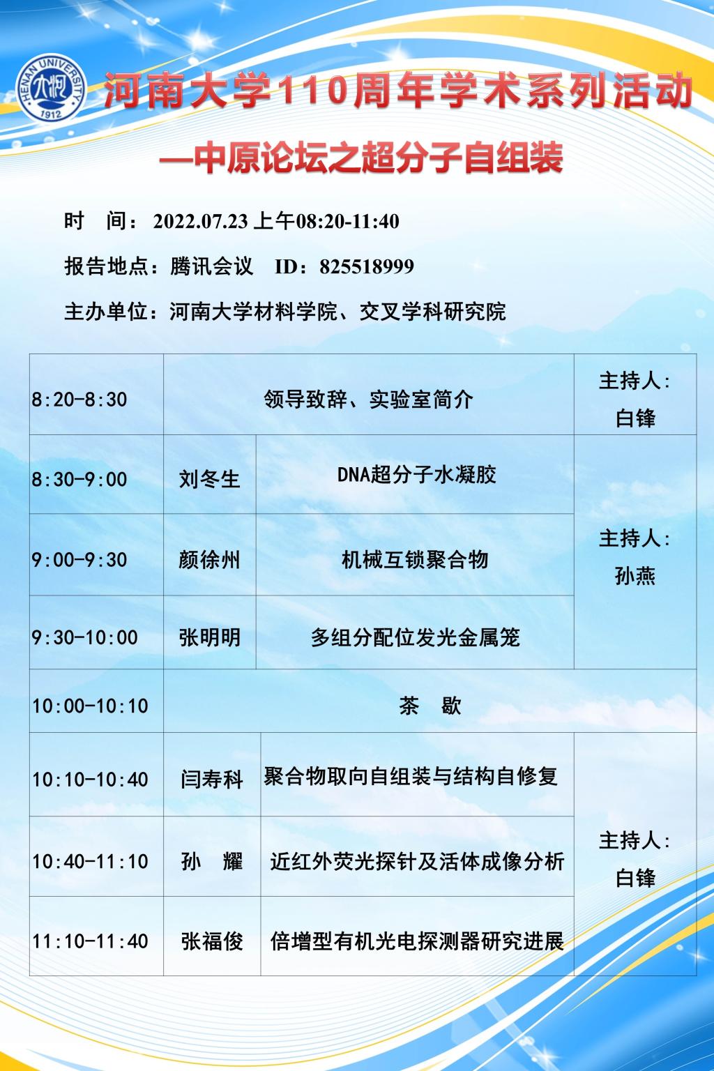yl7703永利官网110周年校庆学术活动:中原论坛之超分子自组装(时间7.23)
