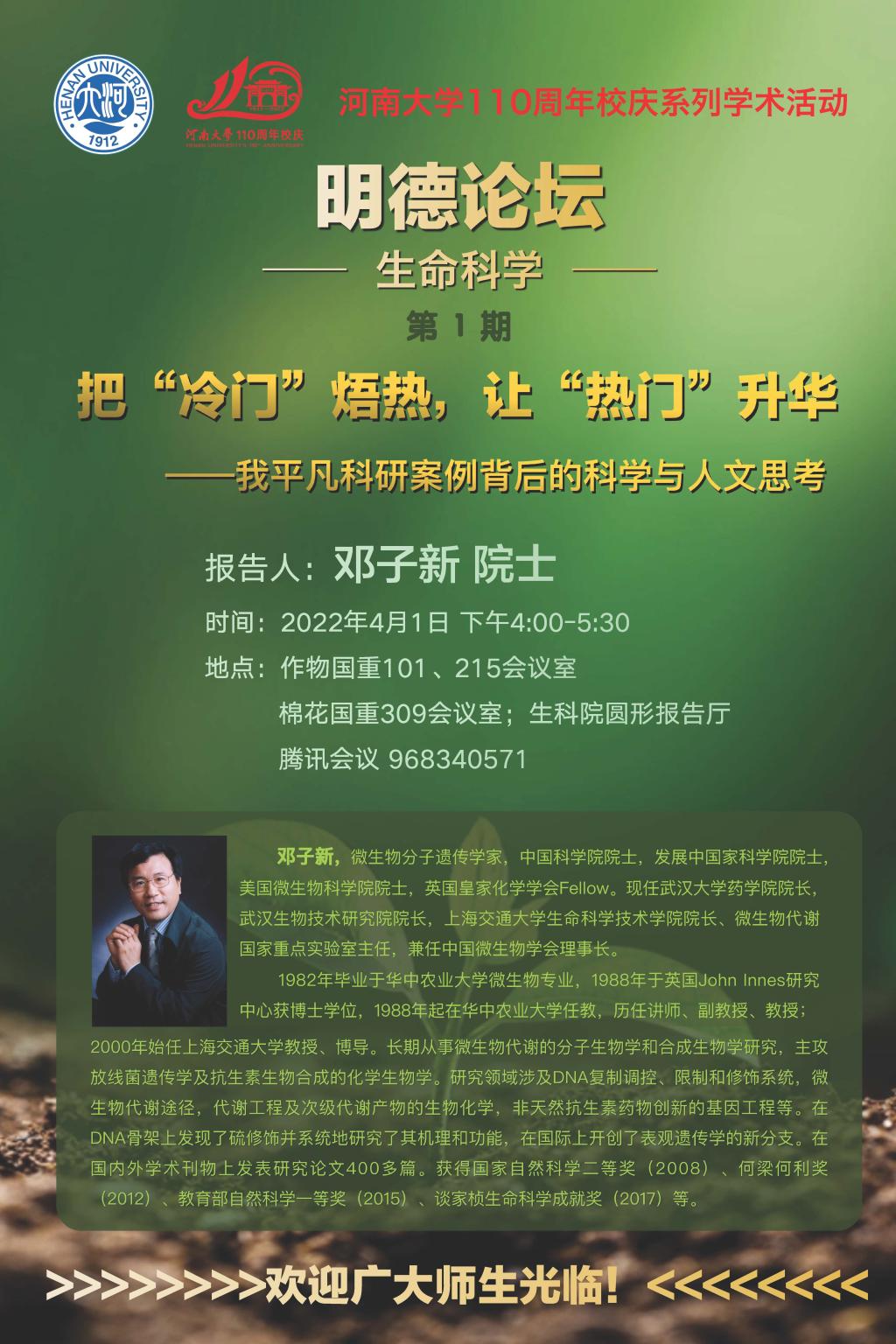 明德论坛第一期邓子新院士:把“冷门”焐热,让“热门”升华(时间4.1)