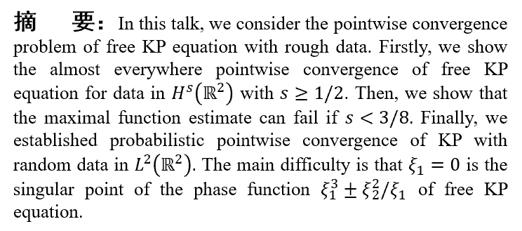 报告2:Pointwise Convergence Problem of KP Equation with Rough Data and Random Data,闫威,河南师范大学教授,报告时间:10月10日17:00;