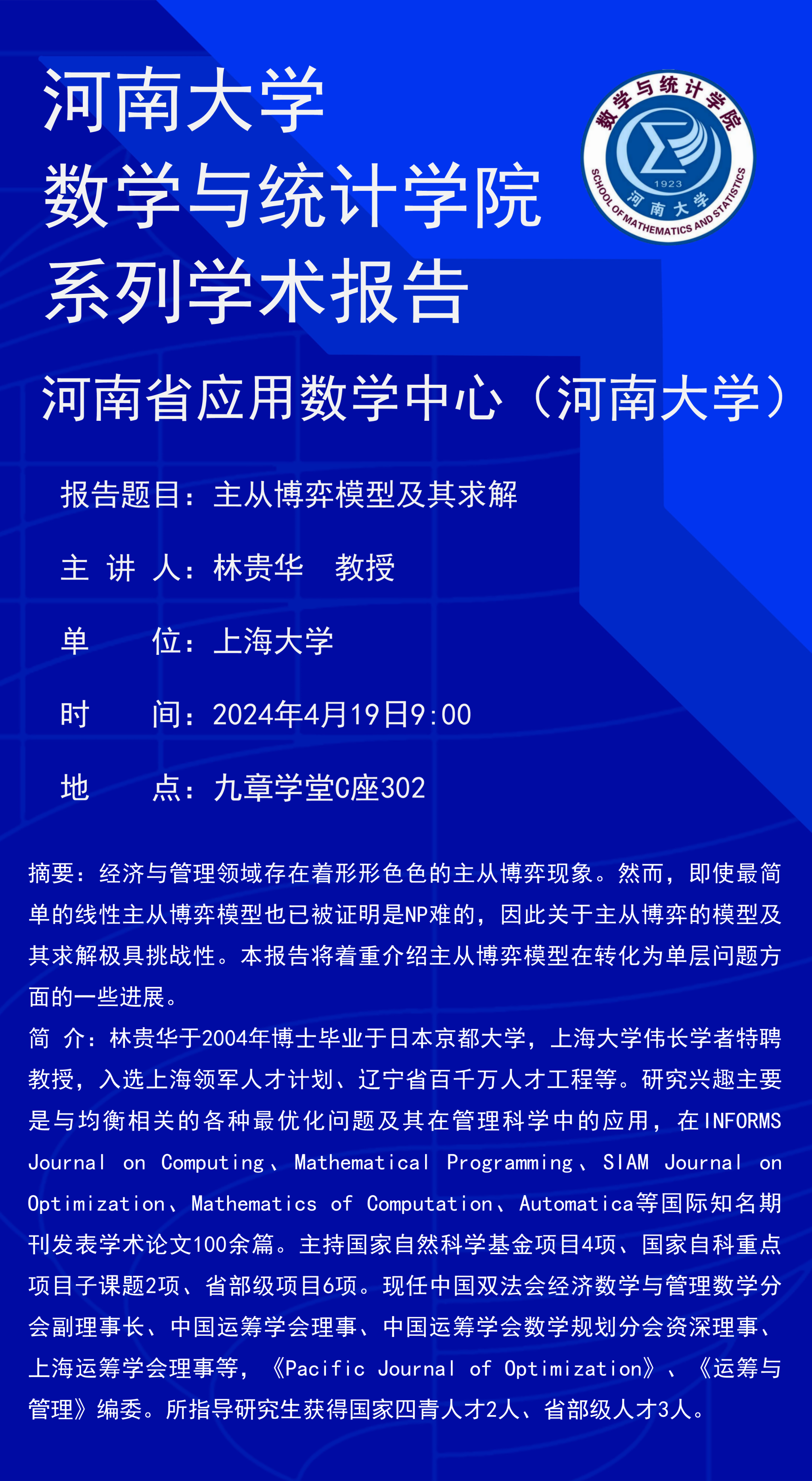 林贵华:主从博弈模型及其求解(时间:4月19日)