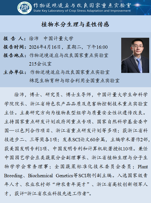 徐沛:植物水分生理与柔性传感(时间:4月16日)