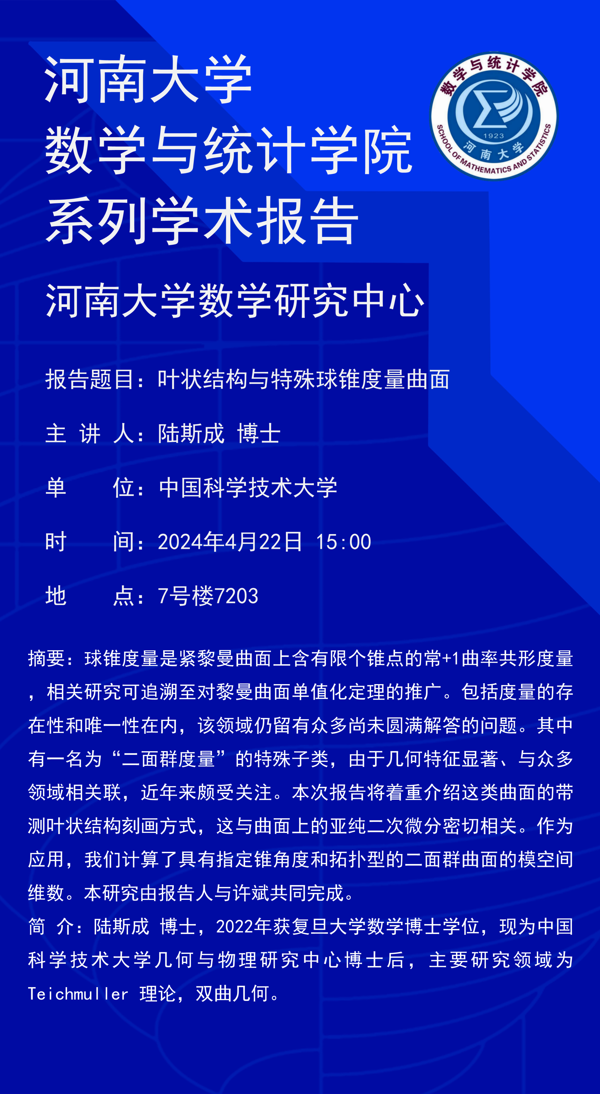 陆斯成:叶状结构与特殊球锥度量曲面(时间:4.22)