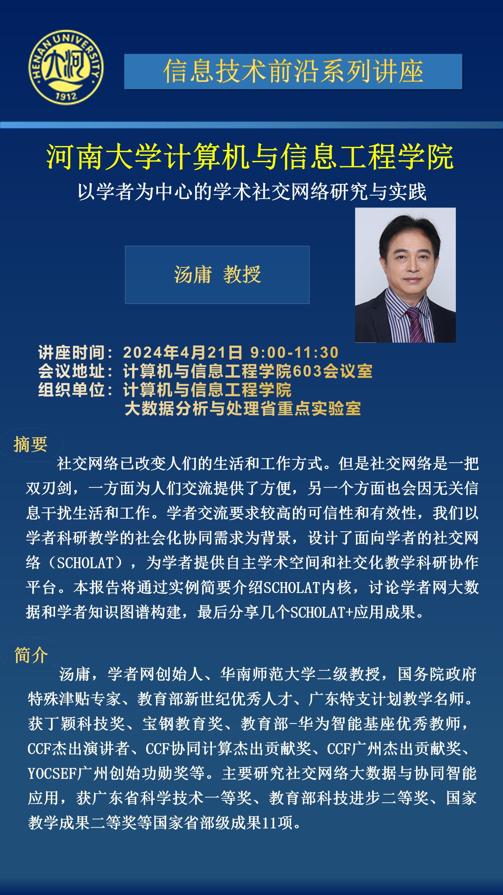 汤庸:以学者为中心的学术社交网络研究与实践(时间:4月21日)
