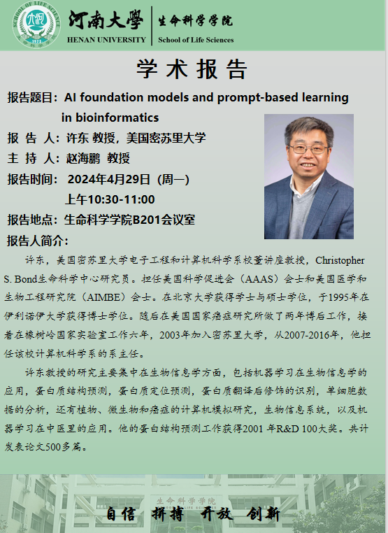 许东:AI foundation models and prompt-based learning in bioinformatics(时间:4月29日)
