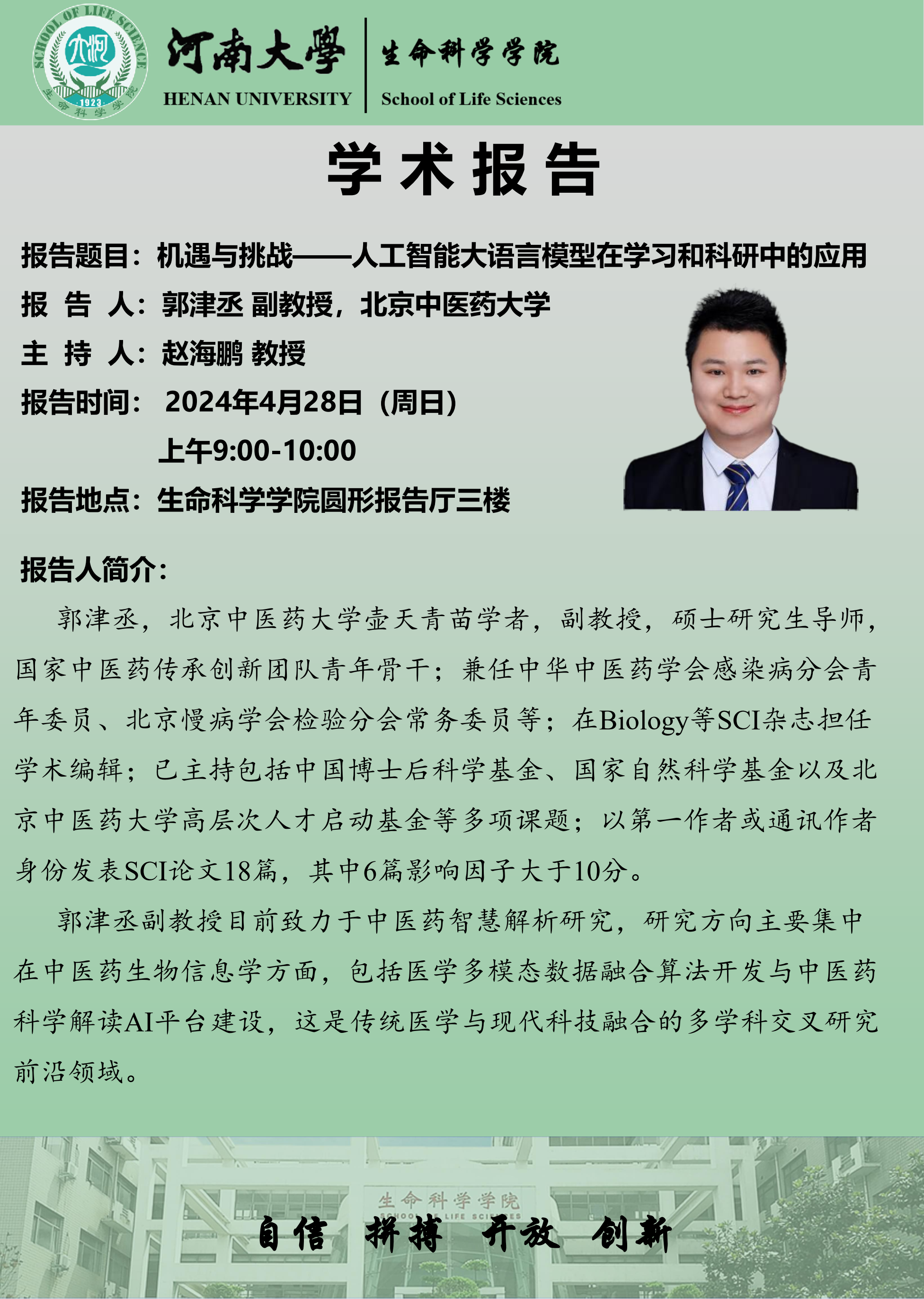 郭津丞:机遇与挑战——人工智能大语言模型在学习和科研中的应用(时间:4月28日)