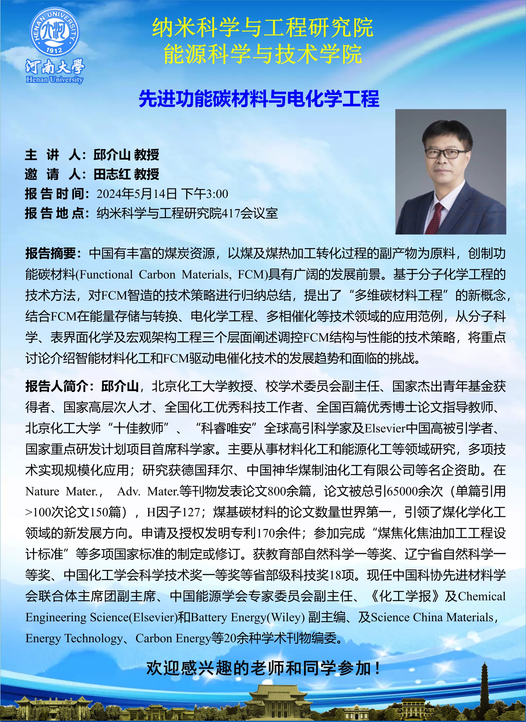 邱介山:先进功能碳材料与电化学工程(时间:5月14日)
