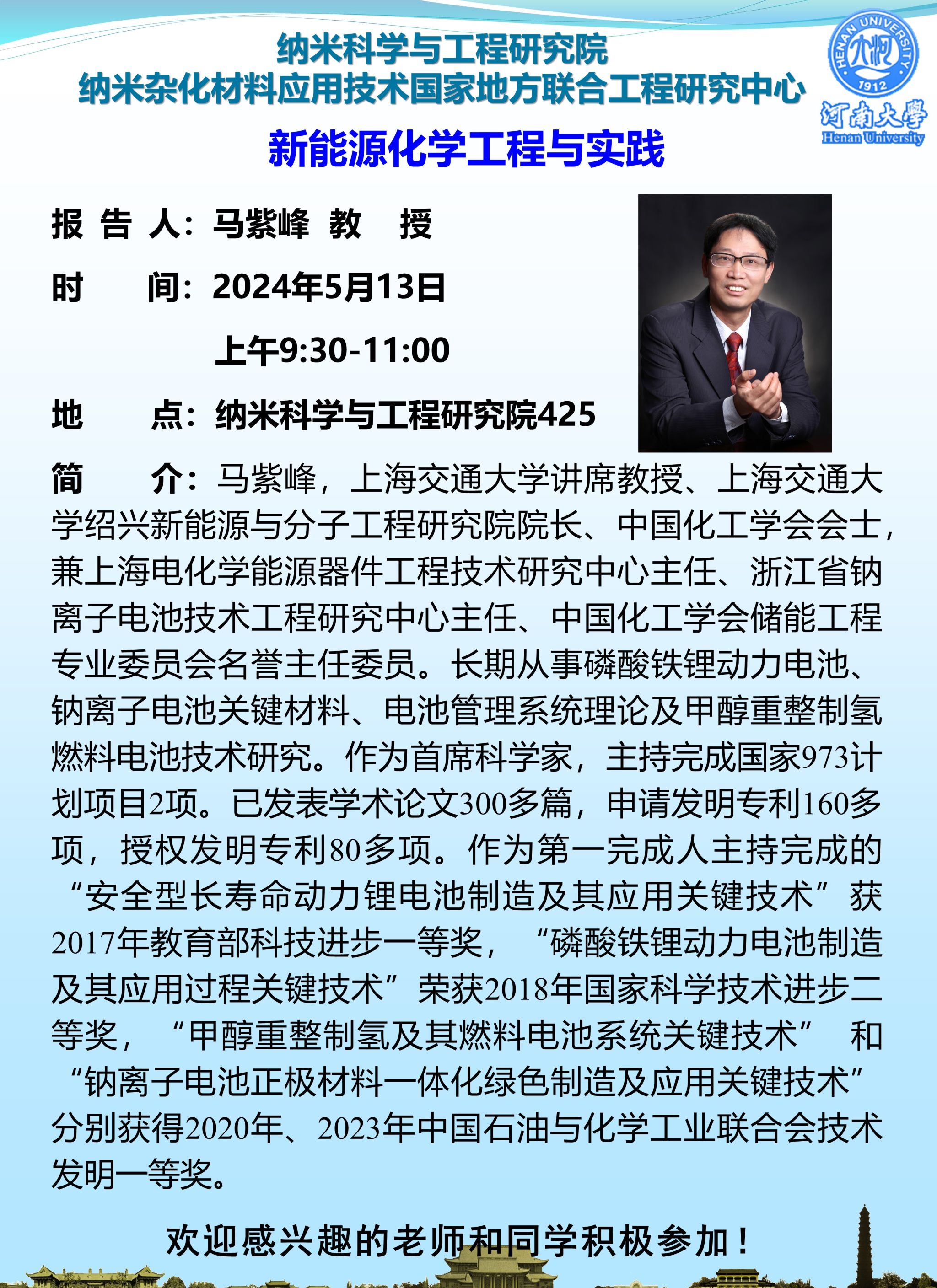马紫峰:新能源化学工程与实践(时间:5月13日)