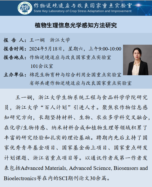 王一娴:植物生理信息光学感知方法研究(时间:5月18日)
