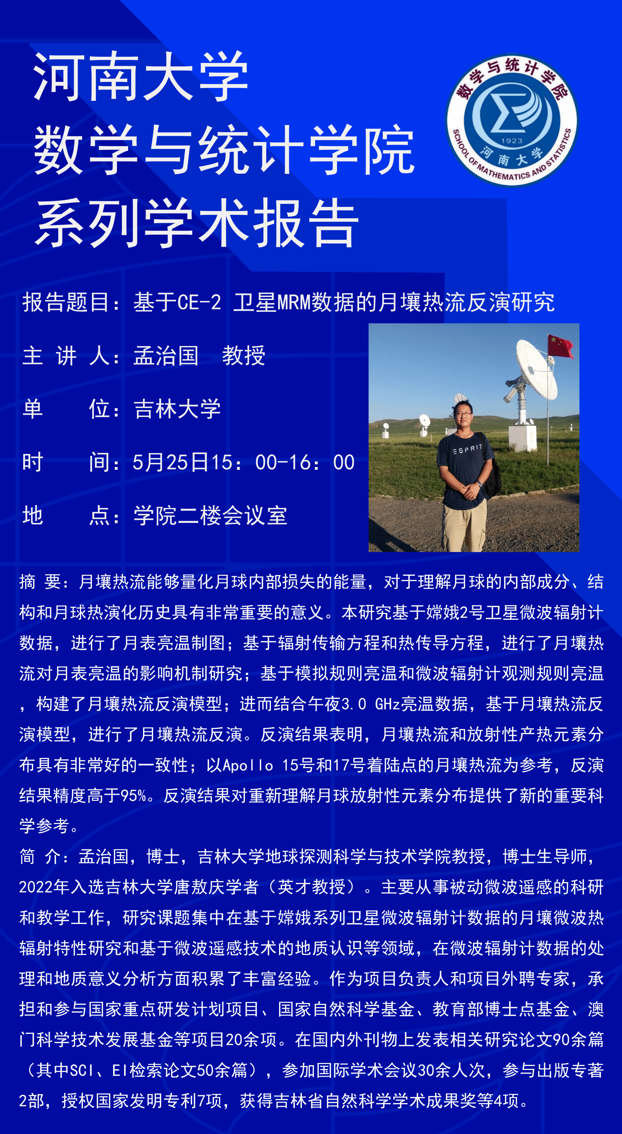 孟治国:基于CE-2卫星MRM数据的月壤热流反演研究 (时间:5月25日)