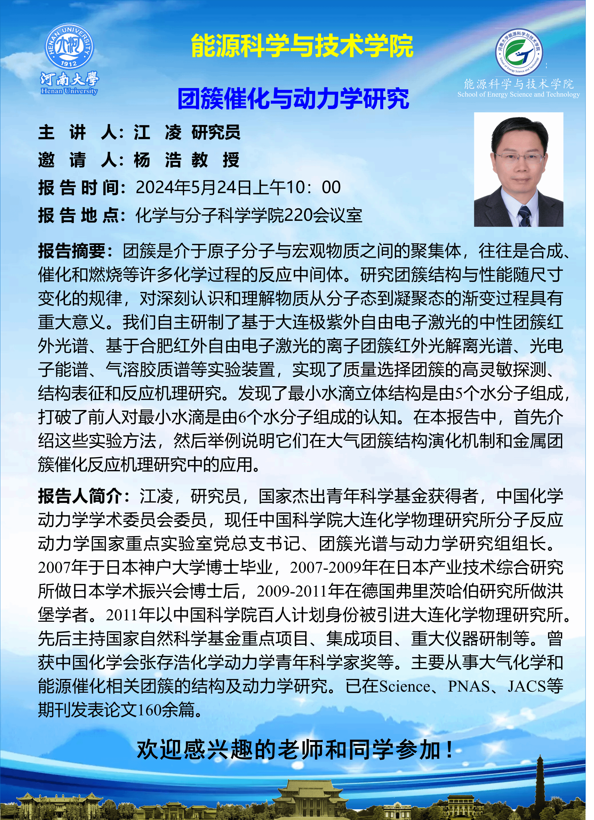 江凌:团簇催化与动力学研究(时间:5月24日)