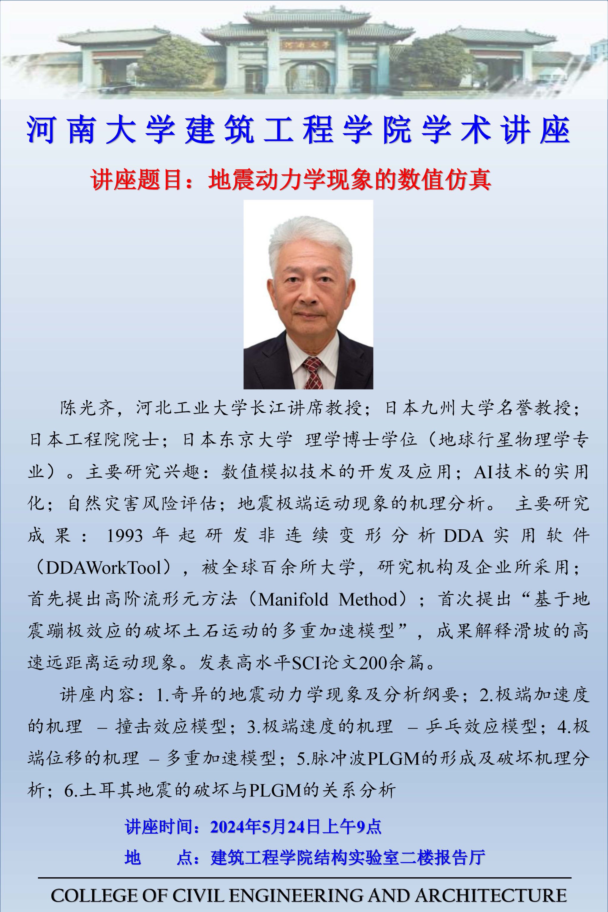 陈光齐:地震动力学现象的数值仿真(时间:5月24日)