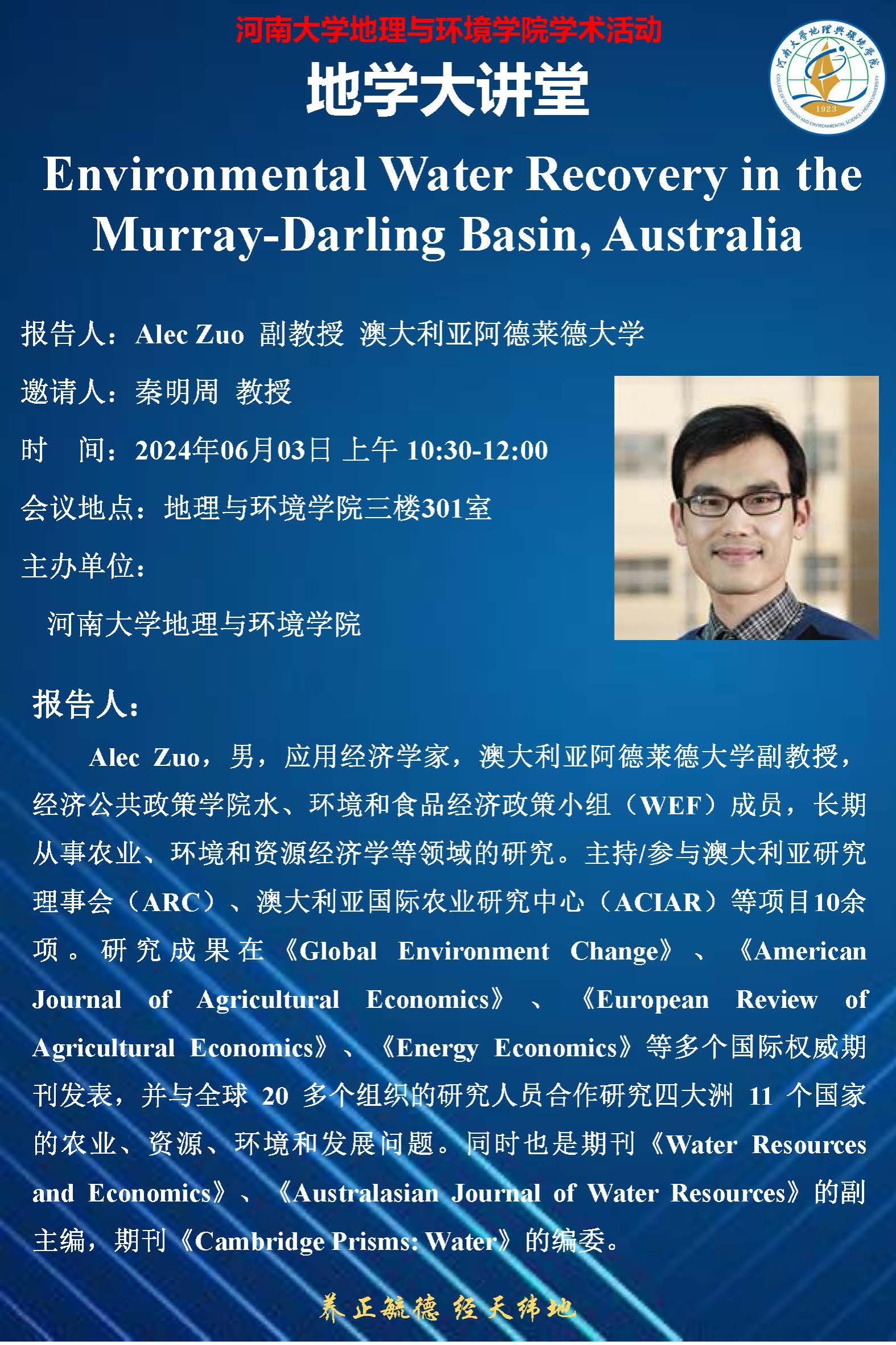 Alec Zuo: Environmental Water Recovery in the Murray-Darling Basin, Australia(时间:6月3日)