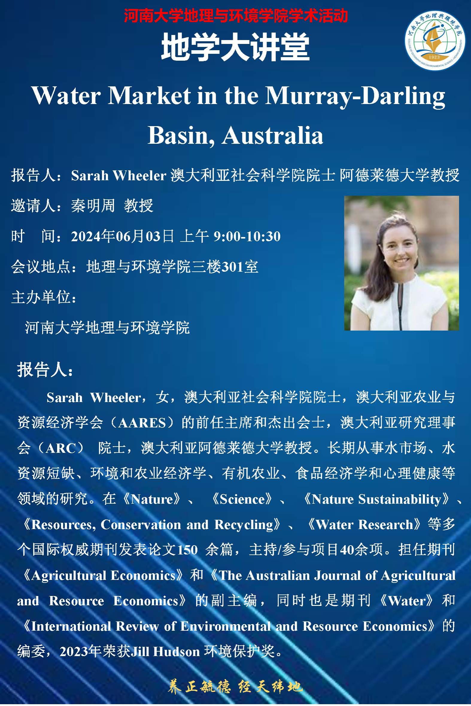 Sarah Wheeler:Water Market in the Murray-Darling Basin, Australia(时间:6月3日)