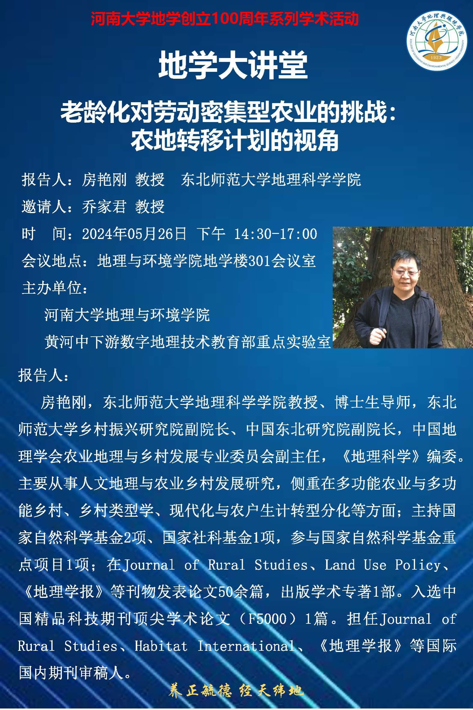房艳刚:老龄化对劳动密集型农业的挑战:农地转移计划的视角(时间:5月26日)