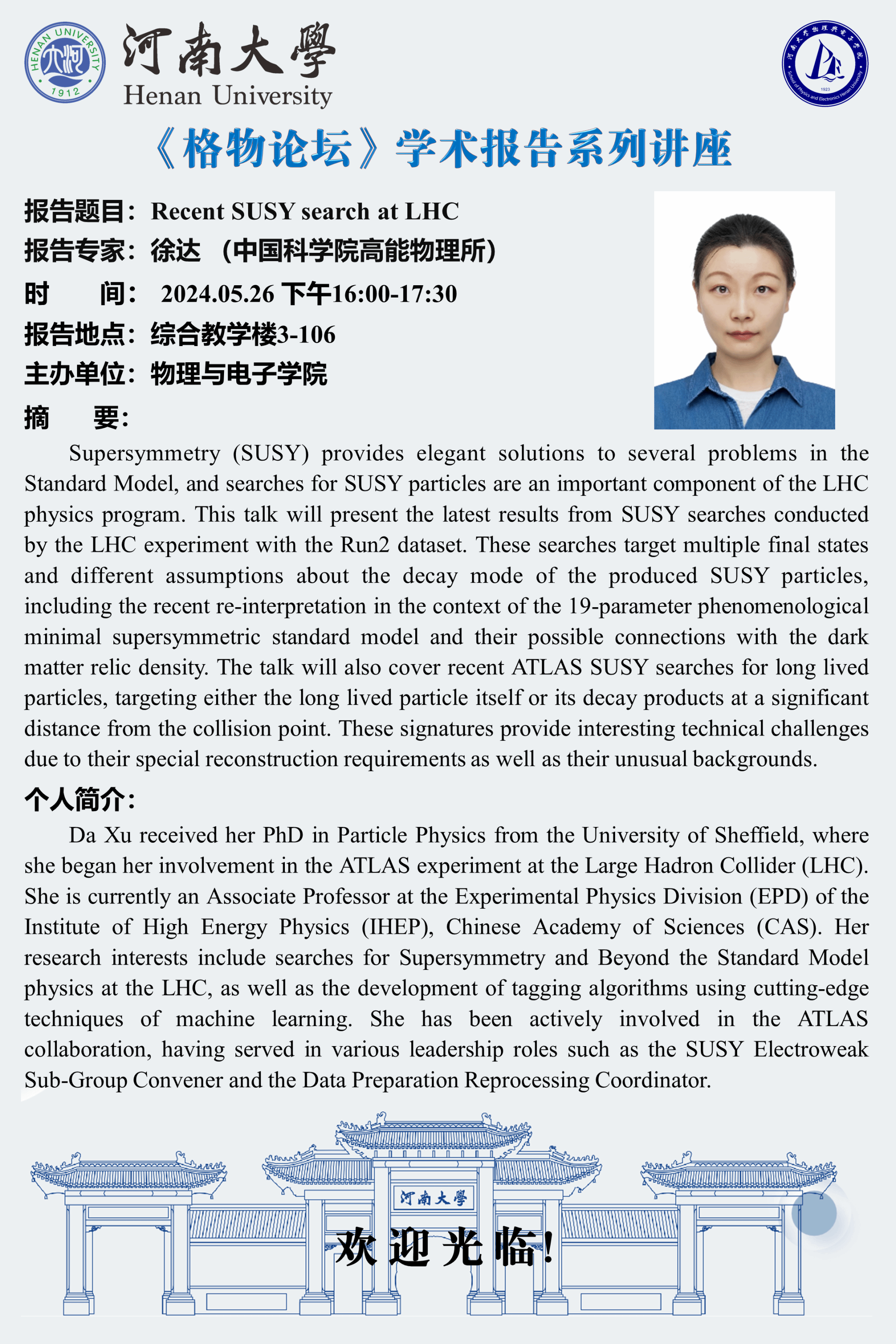 徐达:Recent SUSY search at LHC (时间:5月26日)