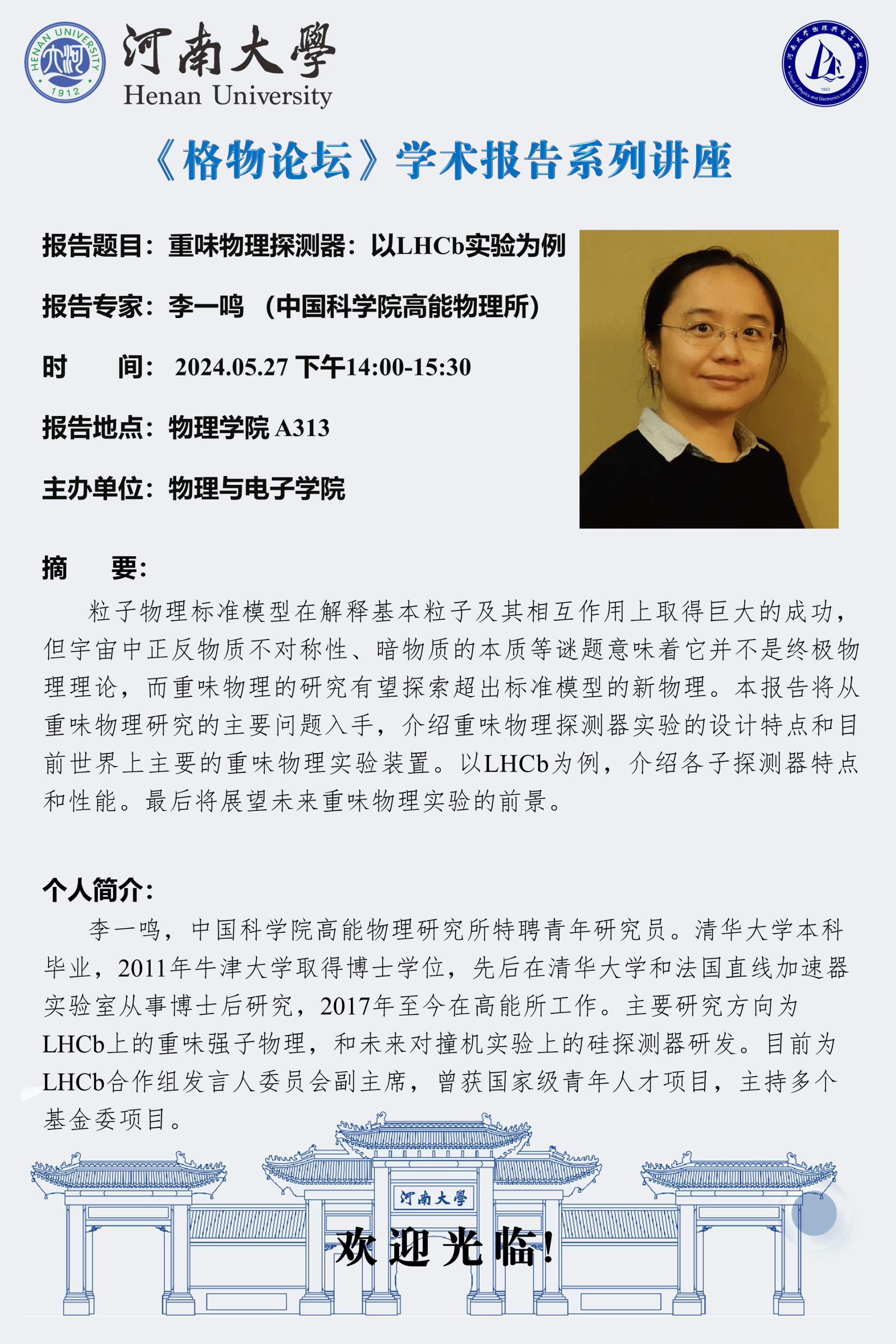 李一鸣:重味物理探测器-以LHCb实验为例(时间:5月27日)