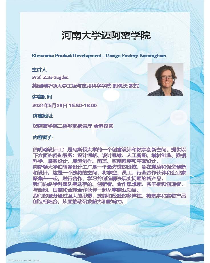 Prof. Kate Sugden:Electronic Product Development - Design Factory Birmingham(时间:5月29日)