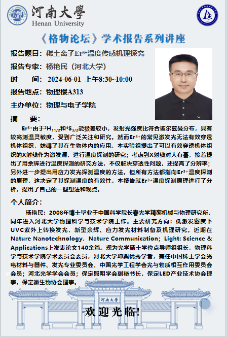 杨艳民:稀土离子Er3+温度传感机理探究(时间:6月1日)