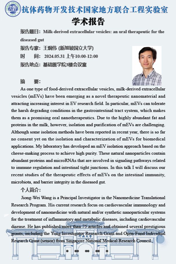 王炯伟:Milk-derived extracellular vesicles: an oral therapeutic for the diseased gut(时间:5月31日)