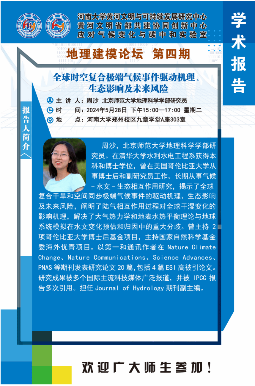 周沙:全球时空复合极端气候事件驱动机理生态影响及未来风险(时间:5月28日)