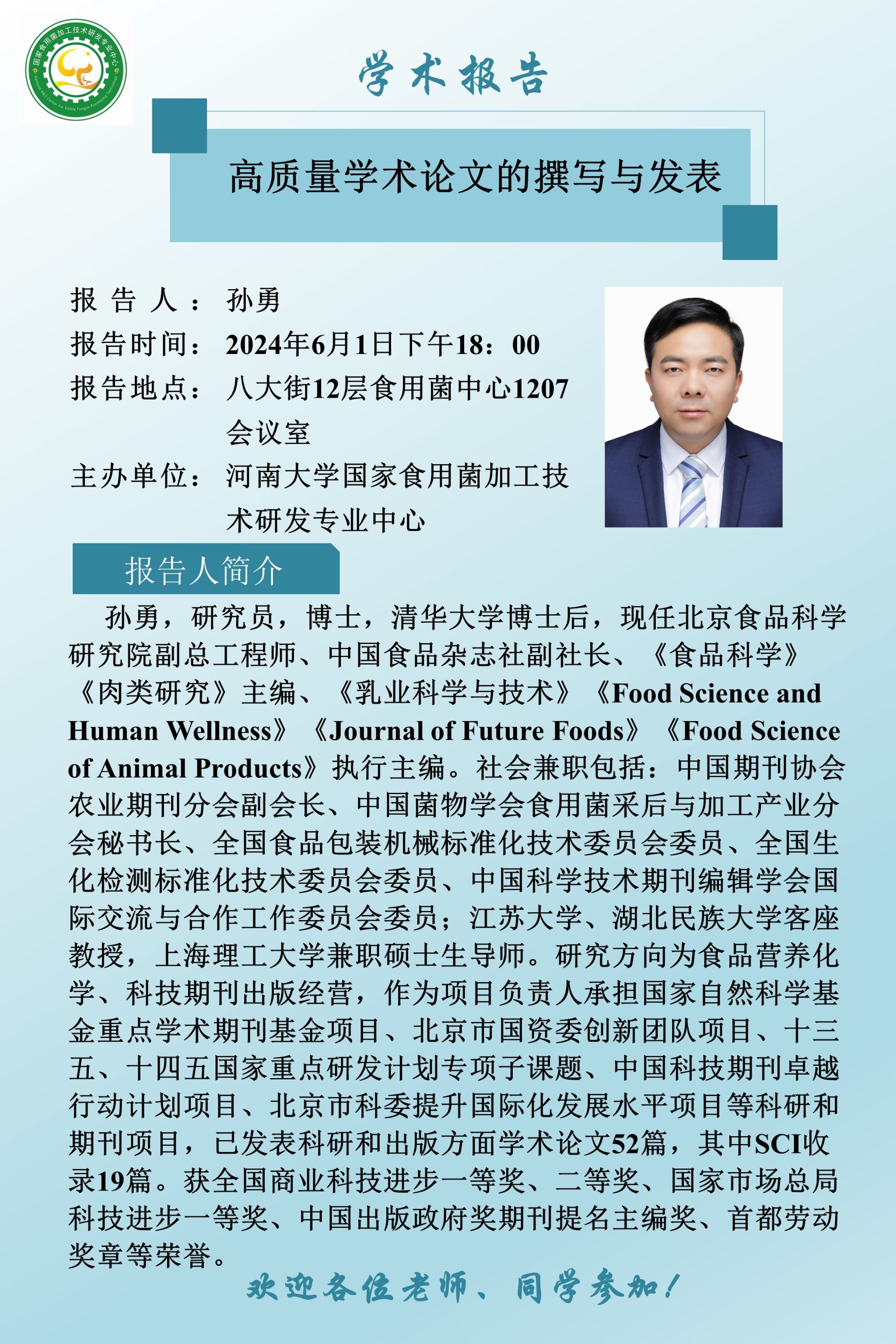 孙勇:高质量学术论文的撰写与发表(时间:6月1日)