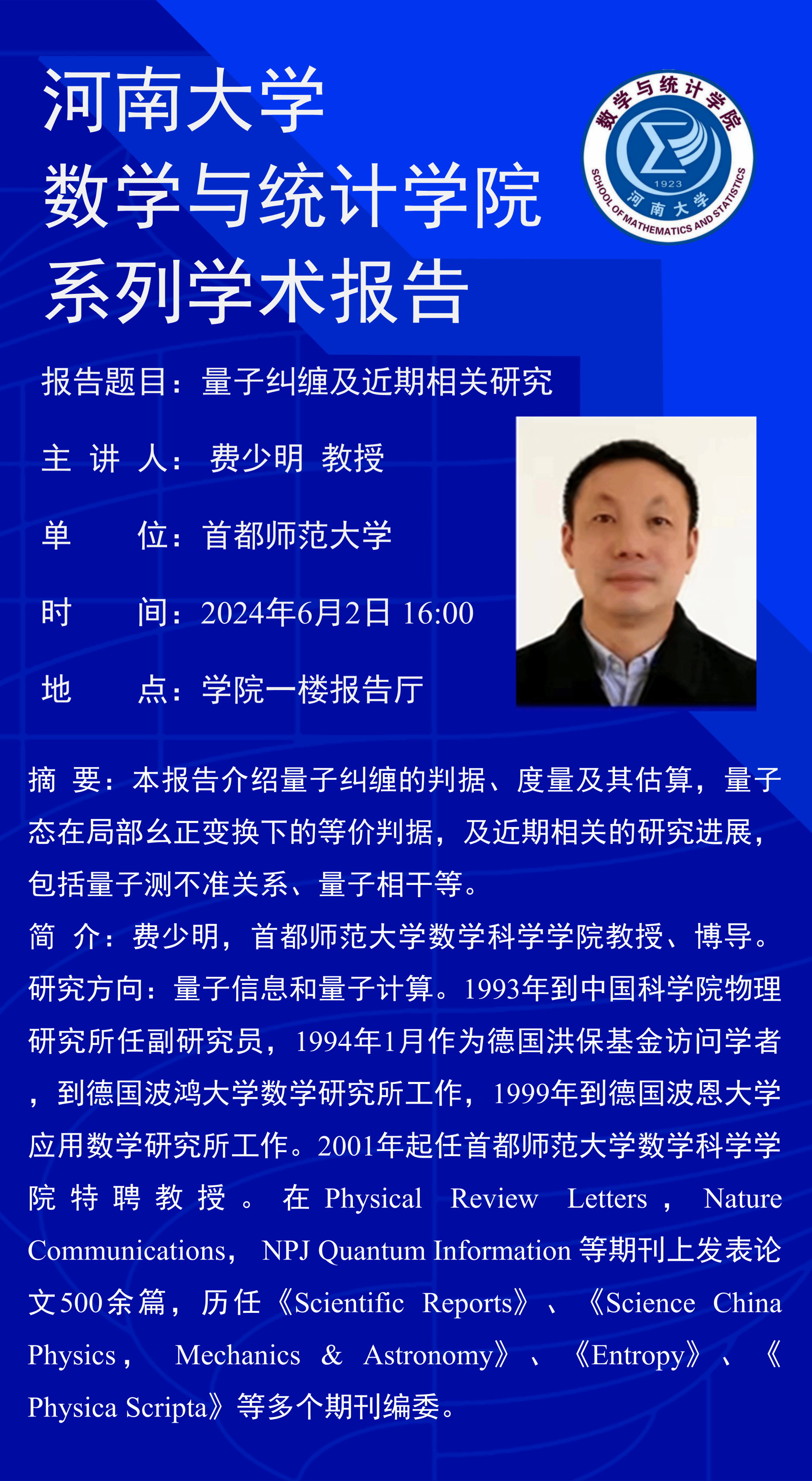 费少明:量子纠缠及近期相关研究(时间:6月2日)