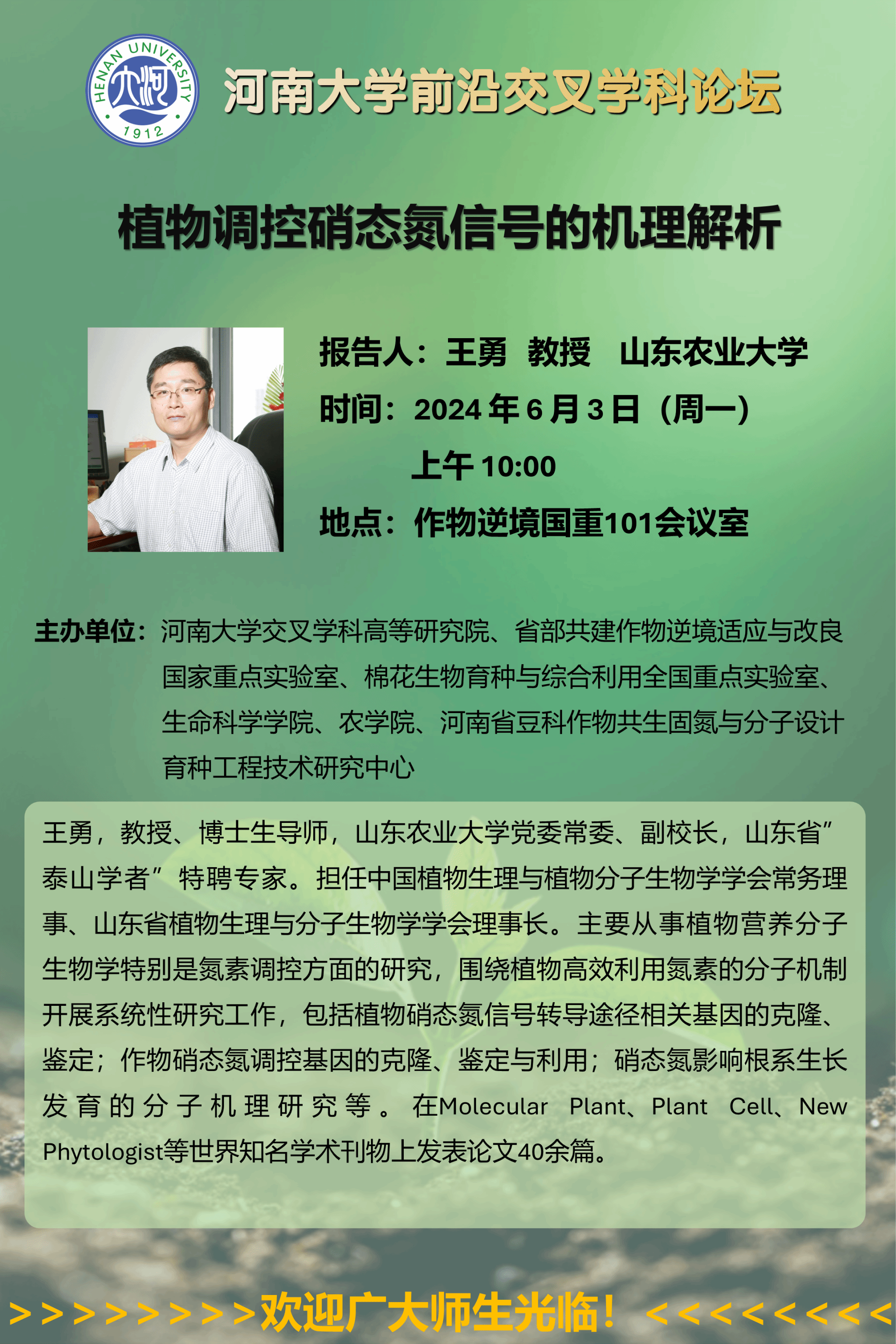 王勇:植物调控硝态氮信号的机理解析(时间:6月3日)
