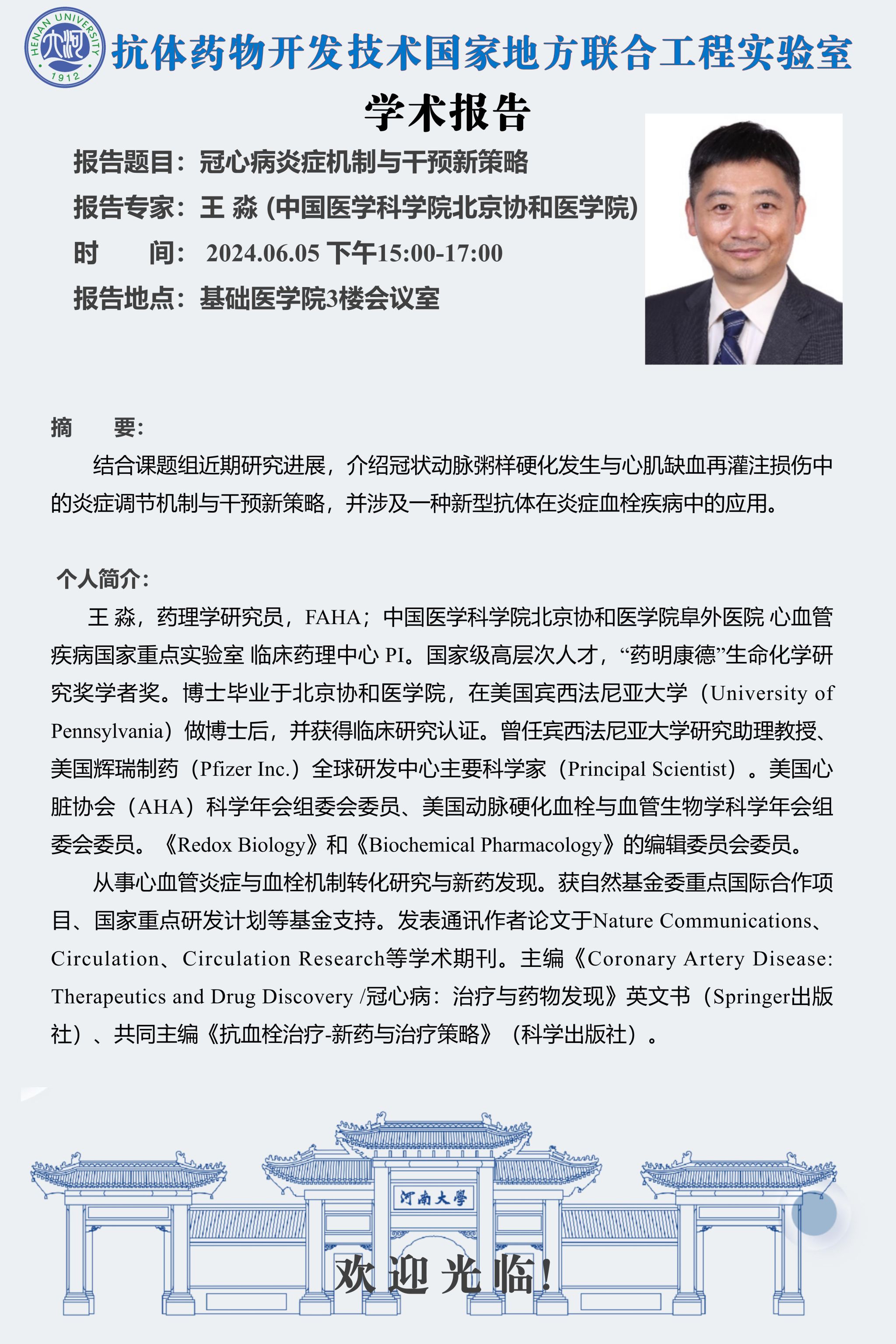 王淼:冠心病炎症机制与干预新策略(时间:6月5日)