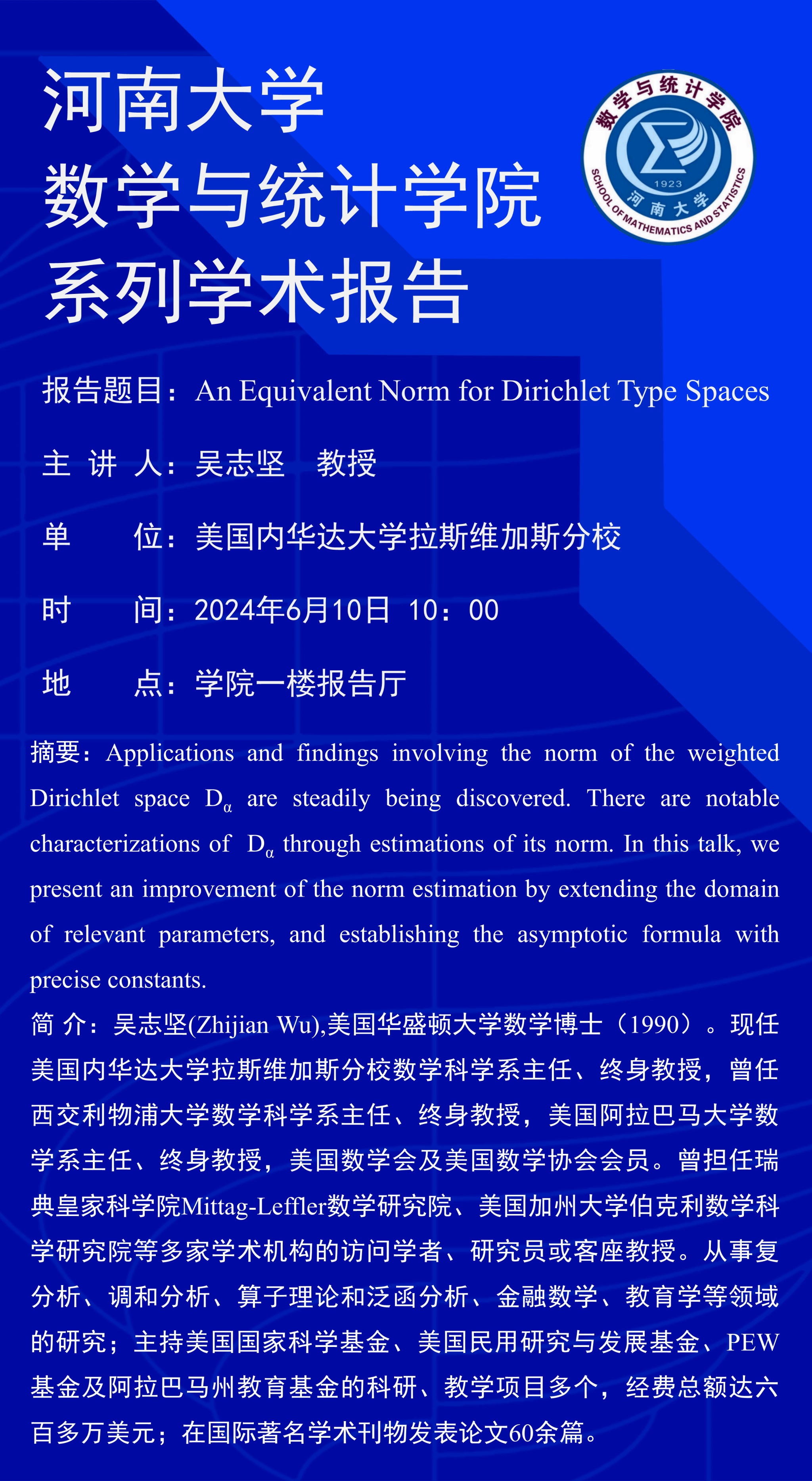 吴志坚:An Equivalent Norm for Dirichlet Type Spaces (时间:6月10日)