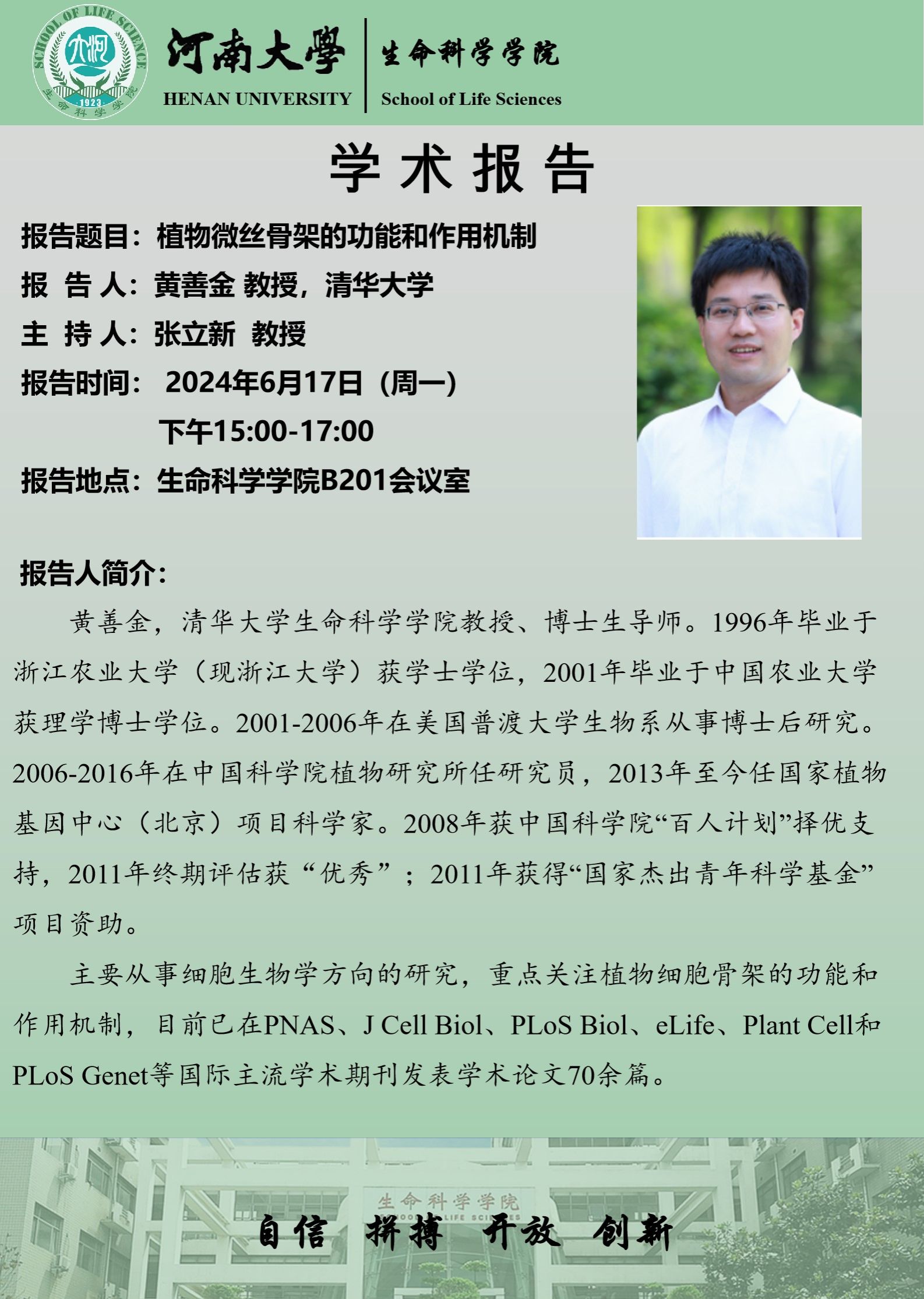 黄善金:植物微丝骨架的功能和作用机制(时间:6月17日)