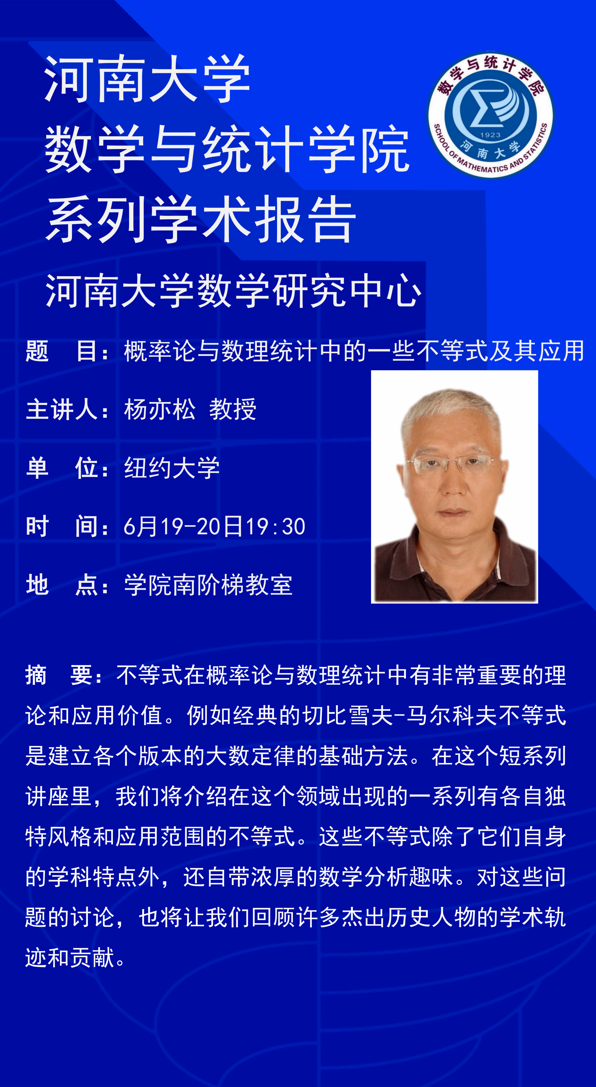 杨亦松:概率论与数理统计中的一些不等式及其应用 (时间:6月19-20日)