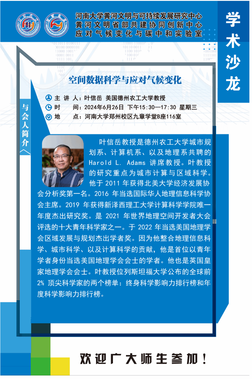 叶信岳:空间数据科学与应对气候变化(时间:6月26日)
