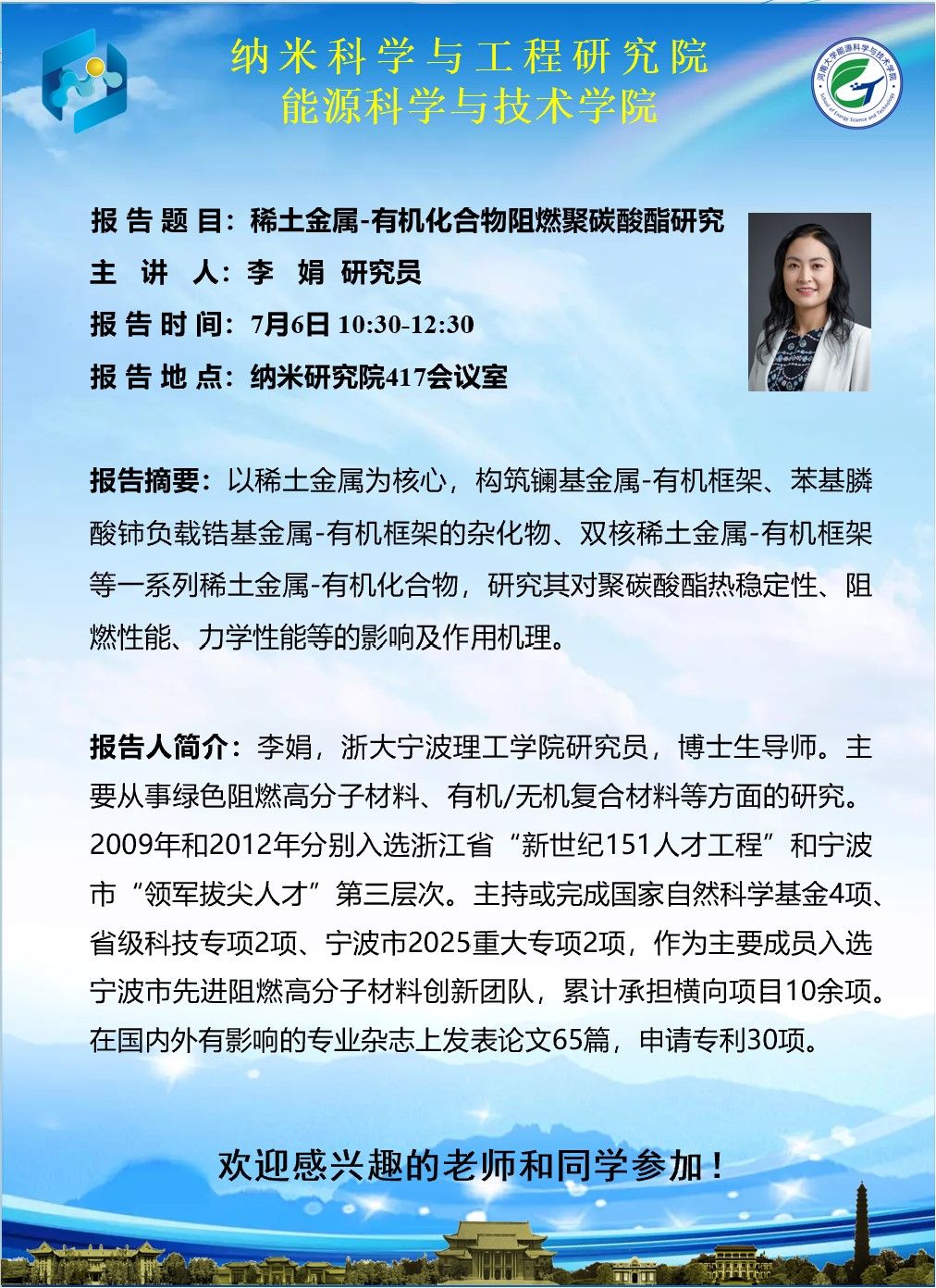 李娟:稀土金属-有机化合物阻燃聚碳酸酯研究(时间:7月6日)