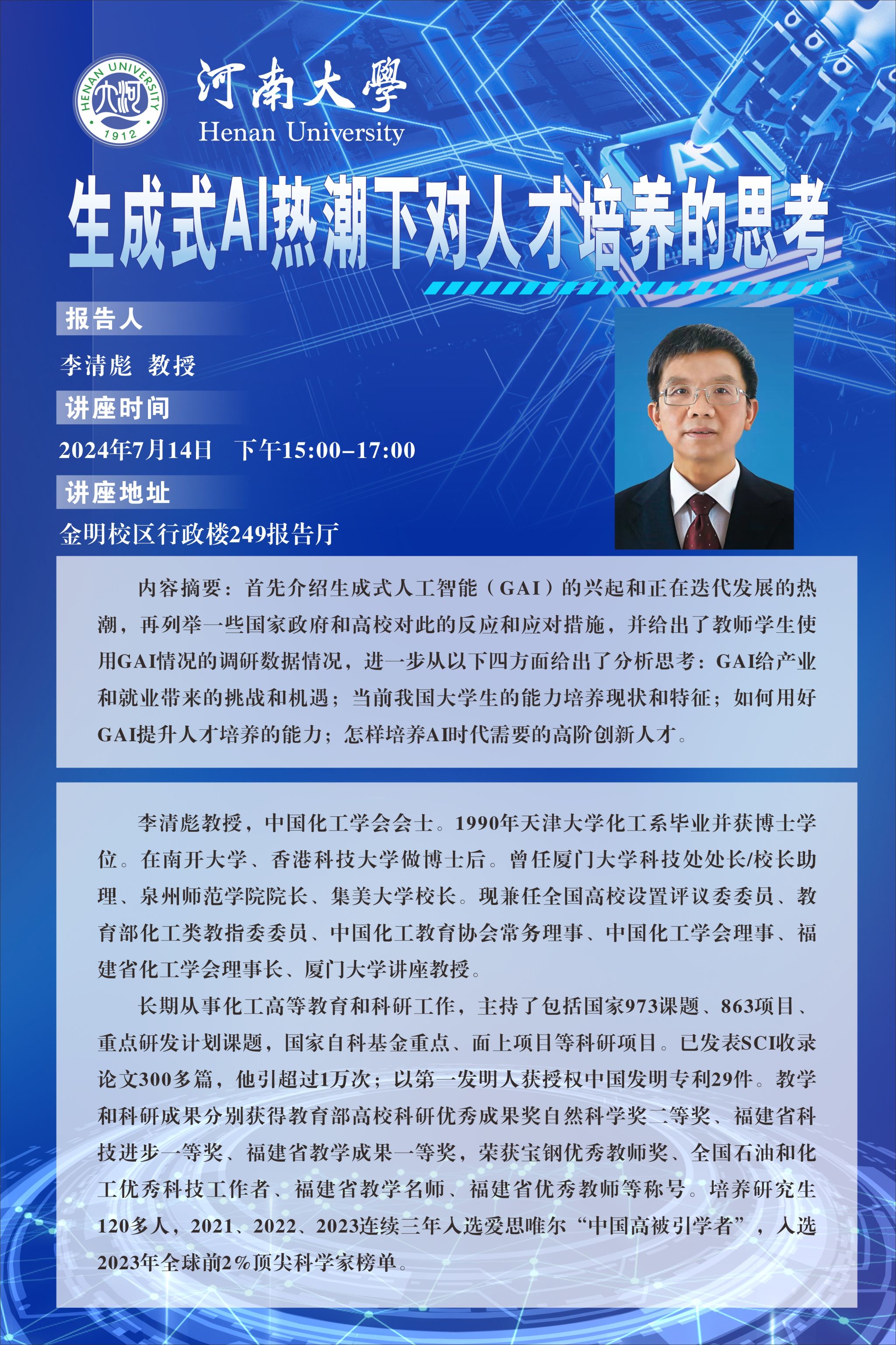 李清彪 :生成式AI热潮下对人才培养的思考(时间:7月14日)