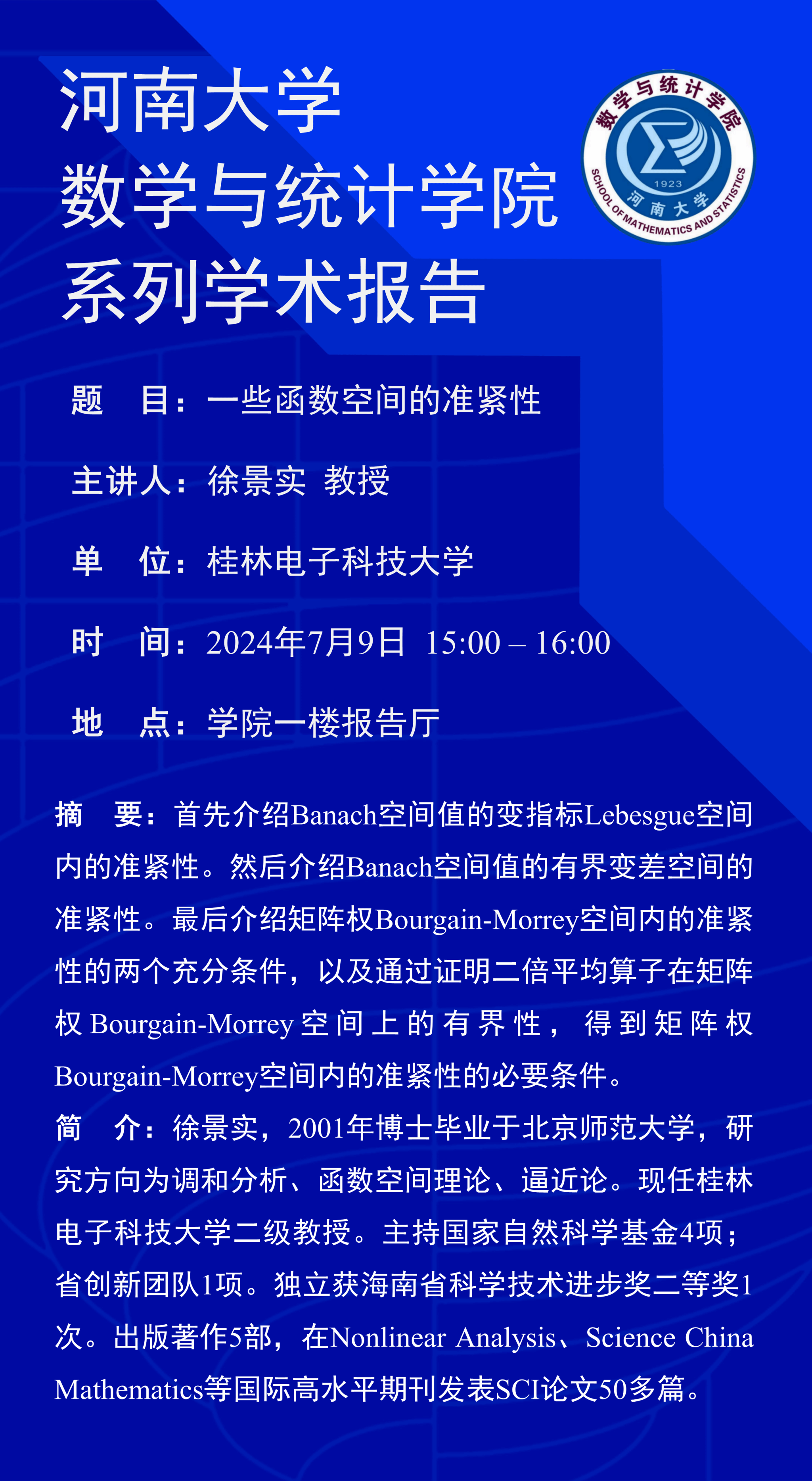 徐景实:一些函数空间的准紧性(时间:7月9日)