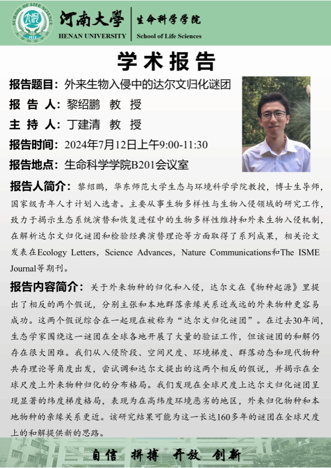 黎绍鹏:外来生物入侵中的达尔文归化谜团(时间:7月12日)