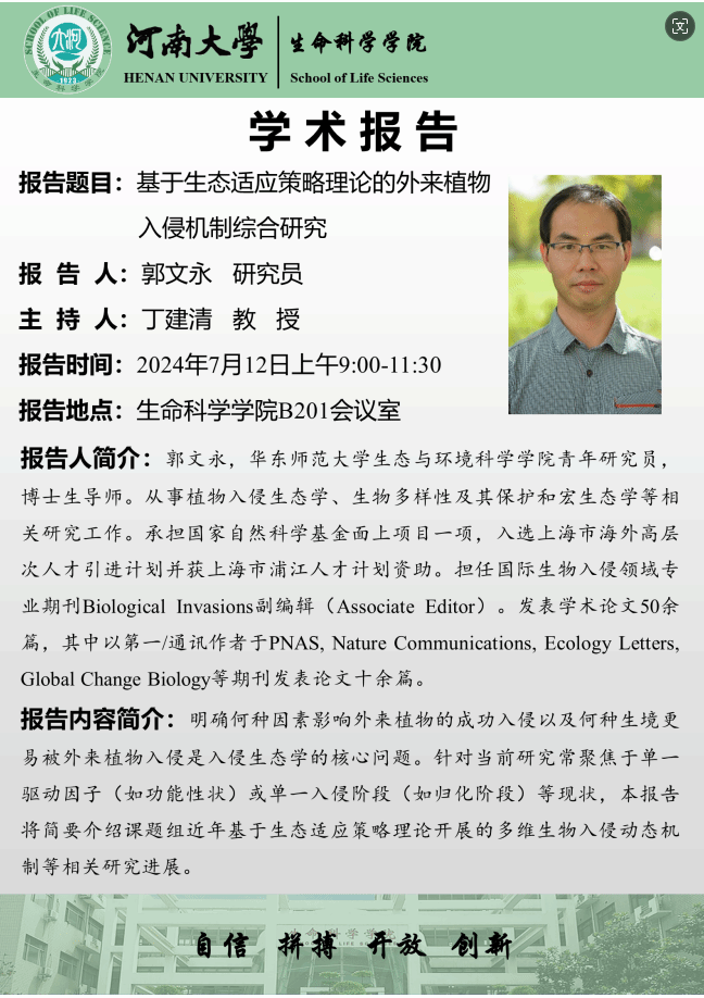 郭文永:基于生态适应策略理论的外来植物入侵机制综合研究(时间:7月12日)