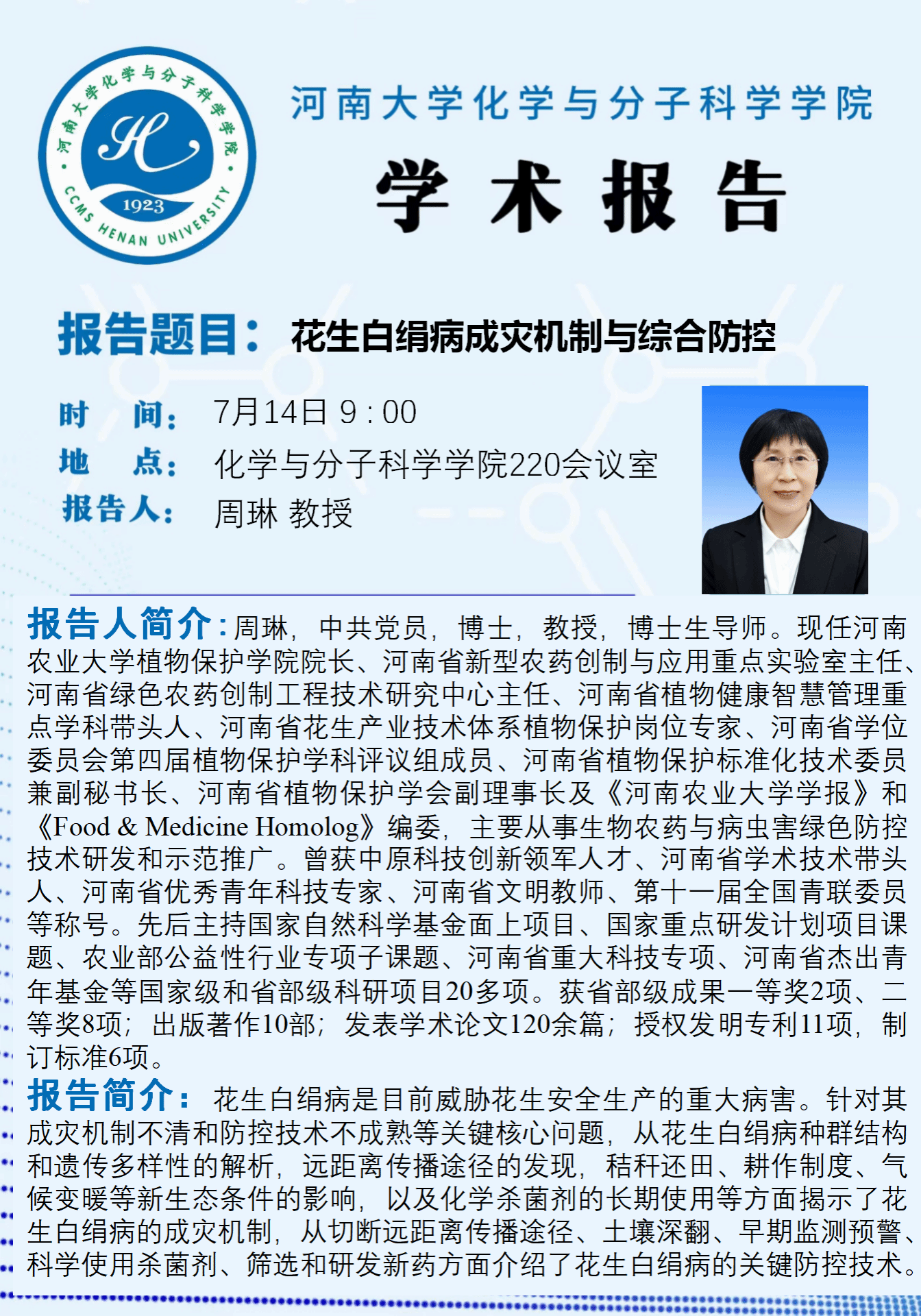 周琳:花生白绢病成灾机制与综合防控(时间:7月14日)
