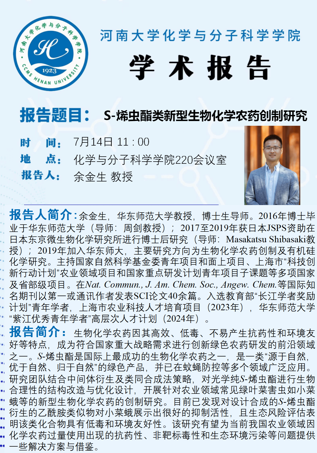 余金生:S-烯虫酯类新型生物化学农药创制研究(时间:7月14日)