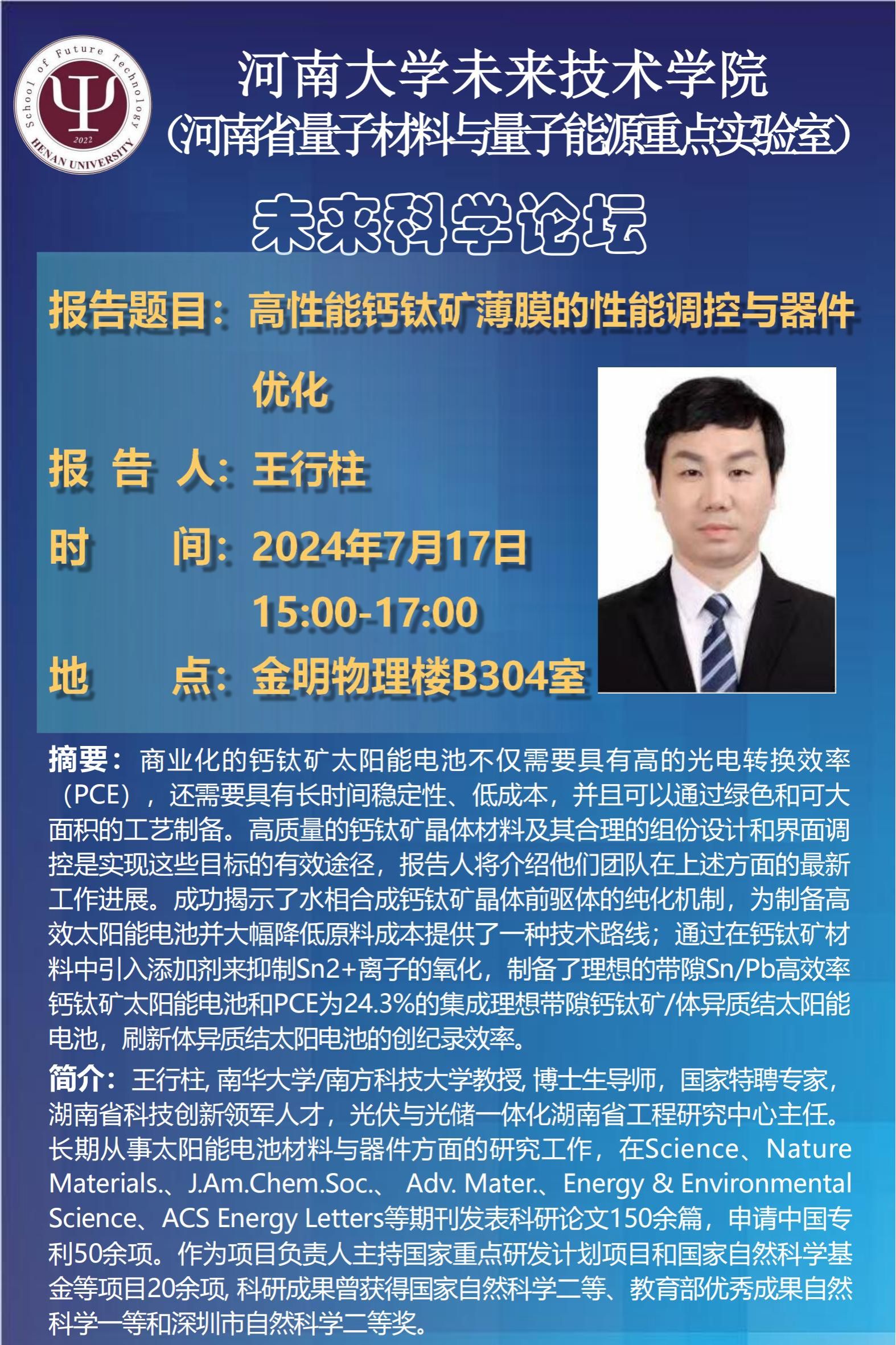 王行柱:高性能钙钛矿薄膜的性能调控与器件优化(时间:7月17日)