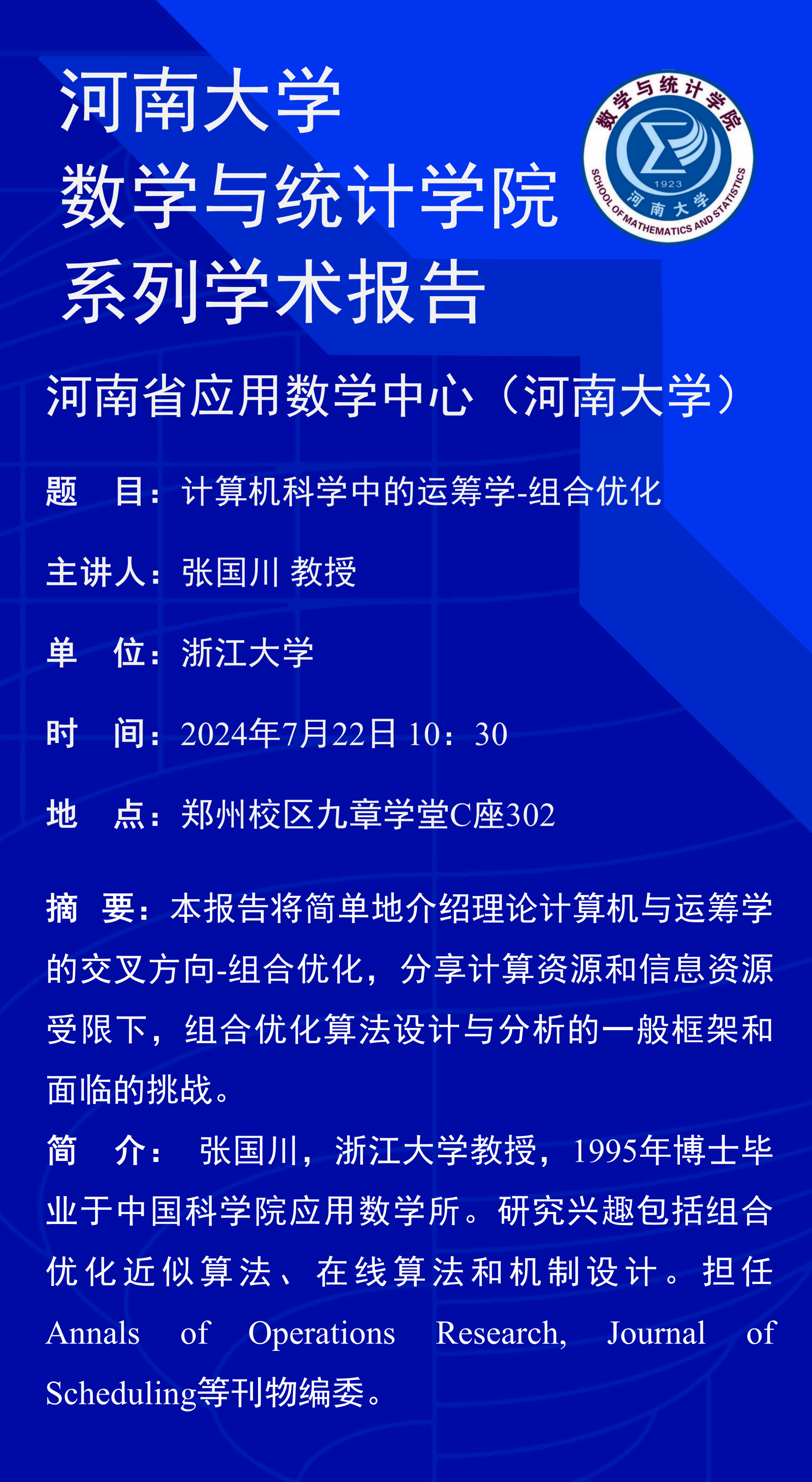 张国川:计算机科学中的运筹学-组合优化(时间:7月22日)