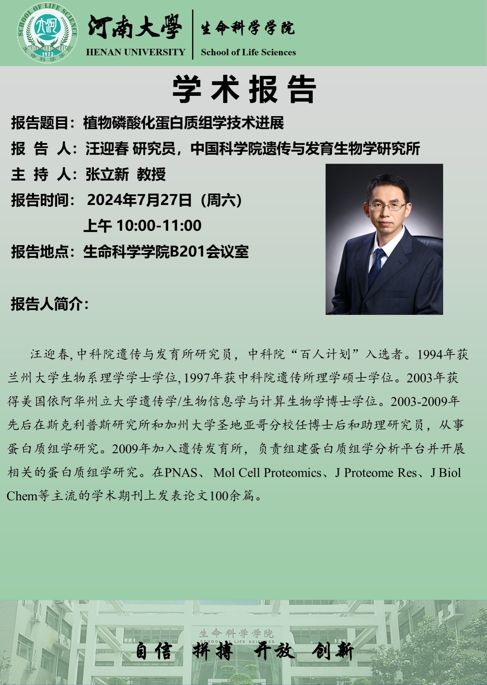 汪迎春:植物磷酸化蛋白质组学技术进展(时间:7 月27 日 )